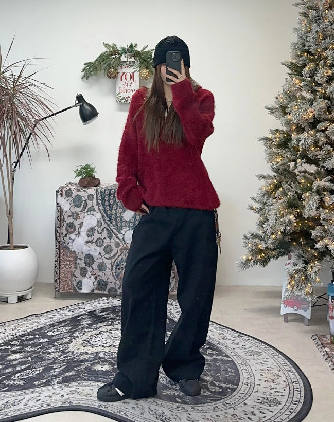Lapel wide cotton pants