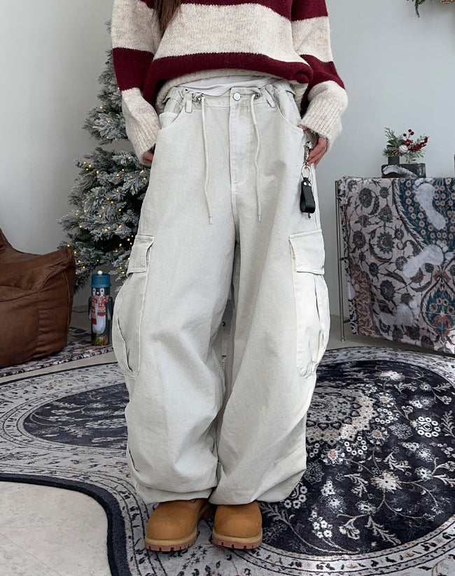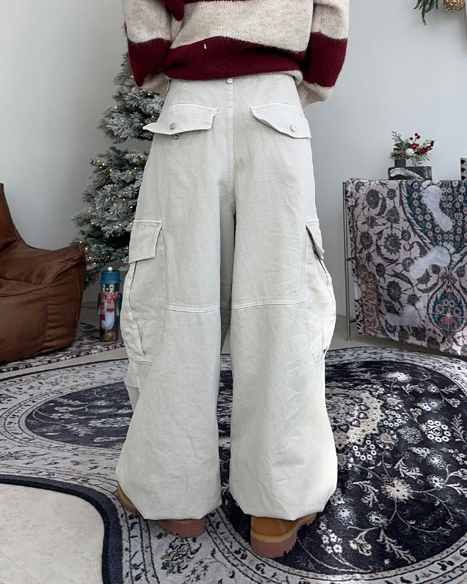 -ONE SIZE (ウエスト74-82 ヒップ128 股上38 股下76 もも周り82 裾周り34 総丈114)