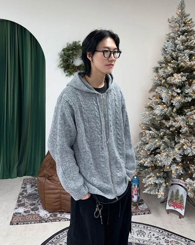 Lena Cable Hood Knit Zip-up