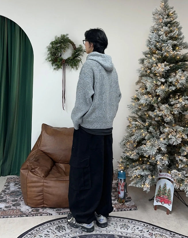 レナケーブルフードニットジップアップ