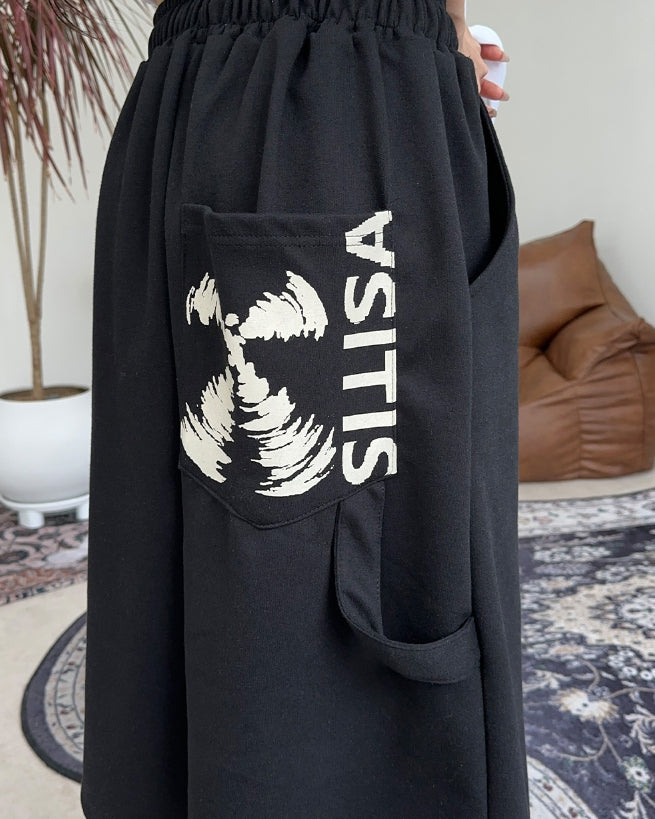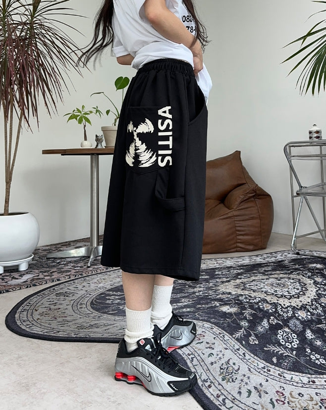 -ONE SIZE (ウエスト(ゴム)66-124 ヒップ120 股上41 股下25 もも周り84 裾周り78 総丈66)