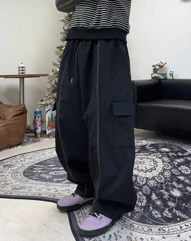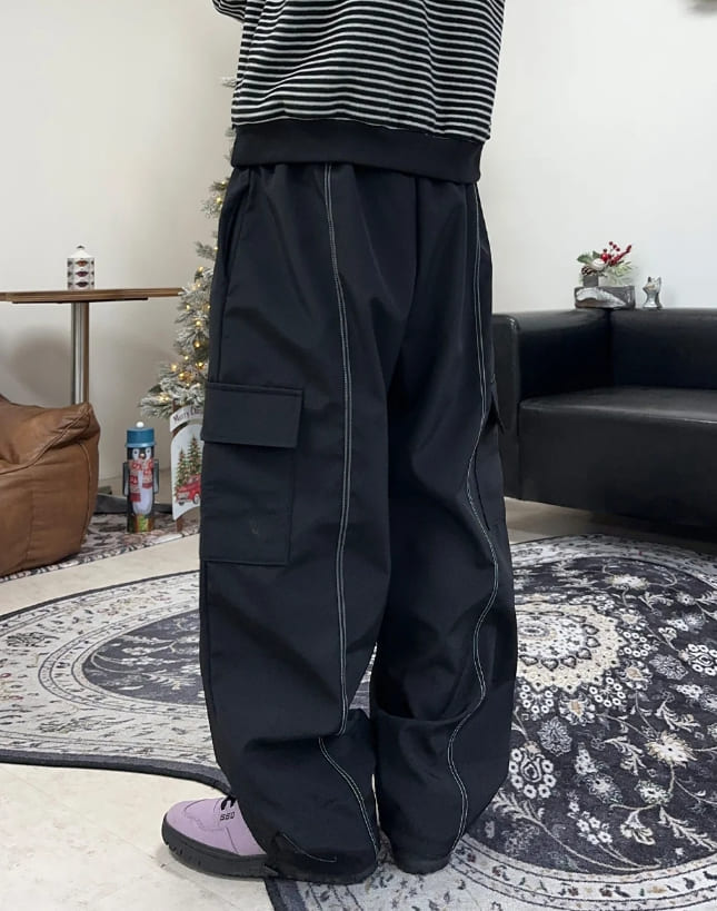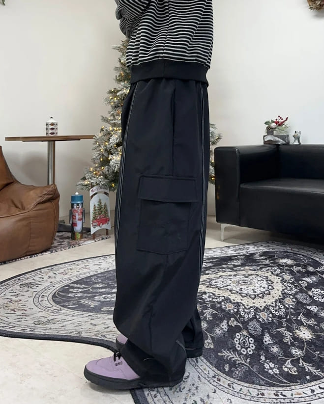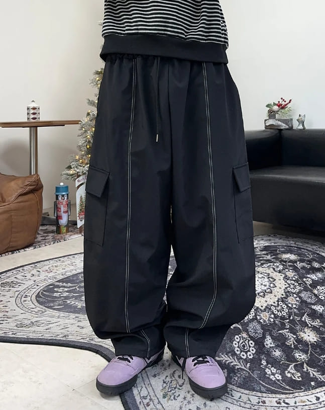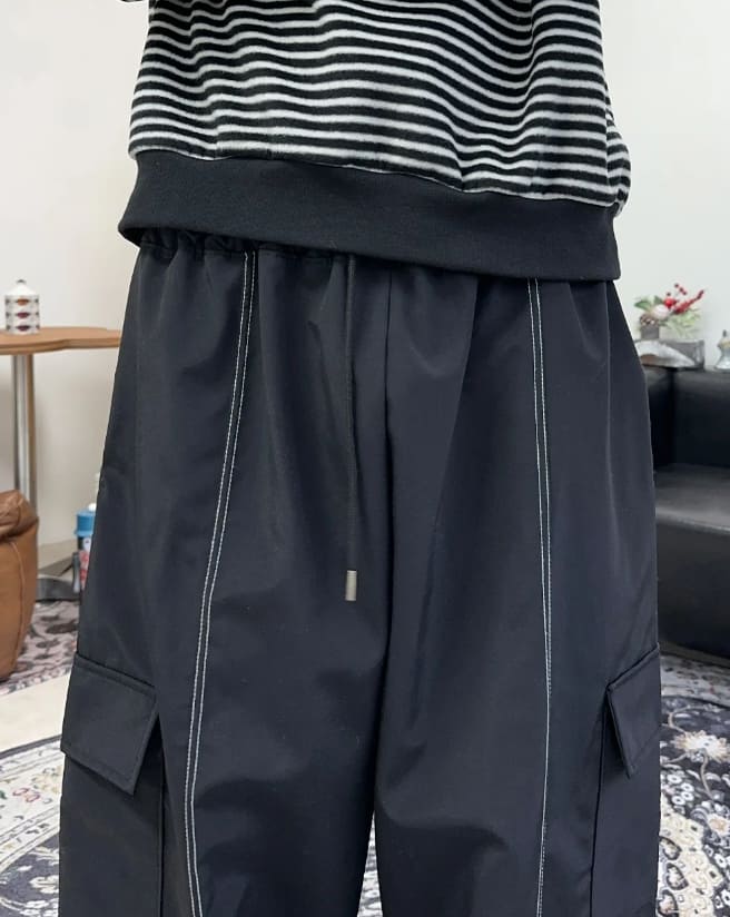 ループステッチ裏起毛ナイロンパンツ