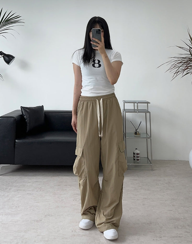 −ONE SIZE (ウエスト(ゴム)72-106 ヒップ124 股上36 股下71 もも周り68 裾周り56 総丈107)
