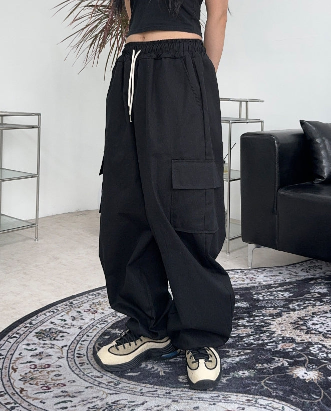 −ONE SIZE (ウエスト(ゴム)60-112 ヒップ132 股上40 股下62 もも周り72 裾周り54 総丈102)