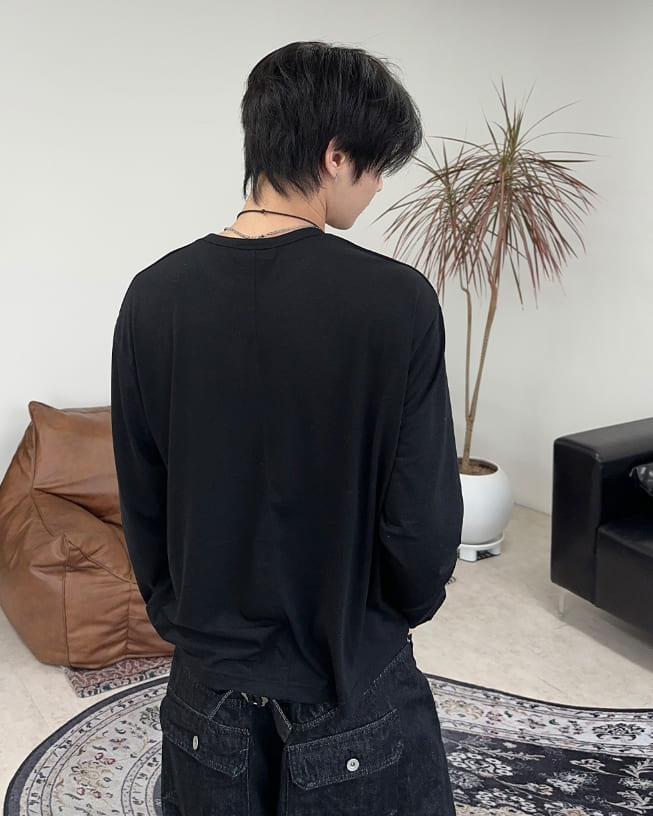 ペレンカットアウトヘンリーネック長袖Tシャツ