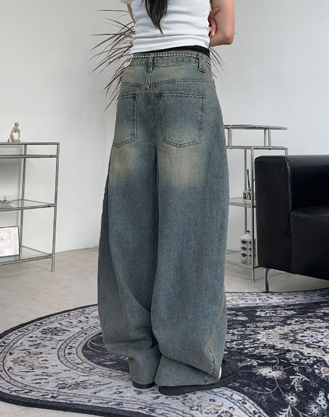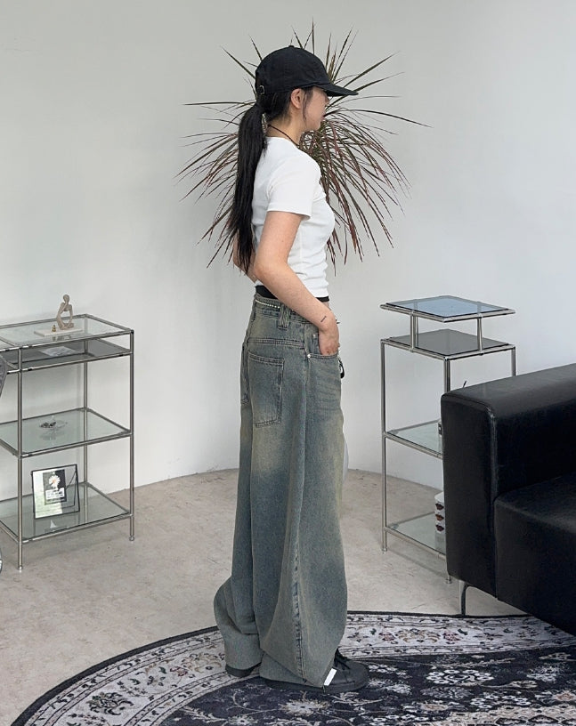 -S (ウエスト76 ヒップ128 股上35 股下77 もも周り78 裾周り38 総丈112)