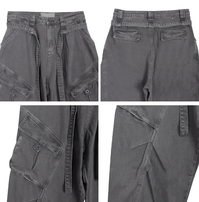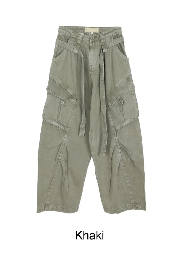 Raven Belted Dyeing Cargo Pants