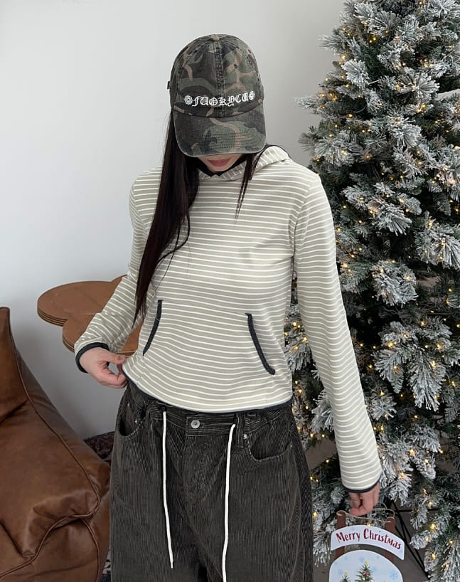 ロアボーダーフード長袖Tシャツ