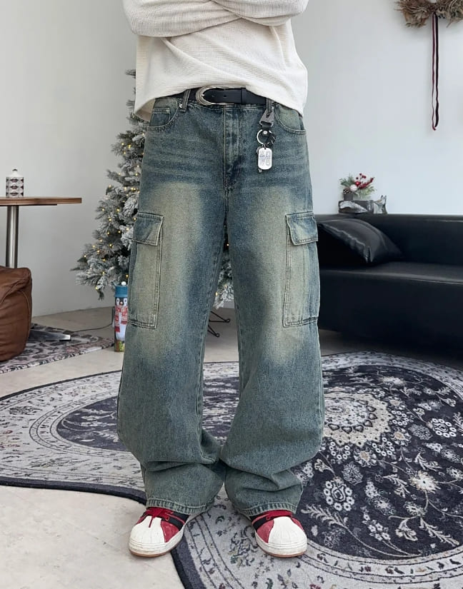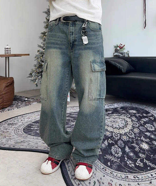 ローデフウォッシュ加工カーゴデニムパンツ