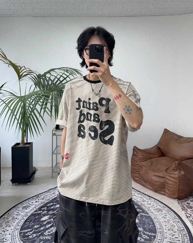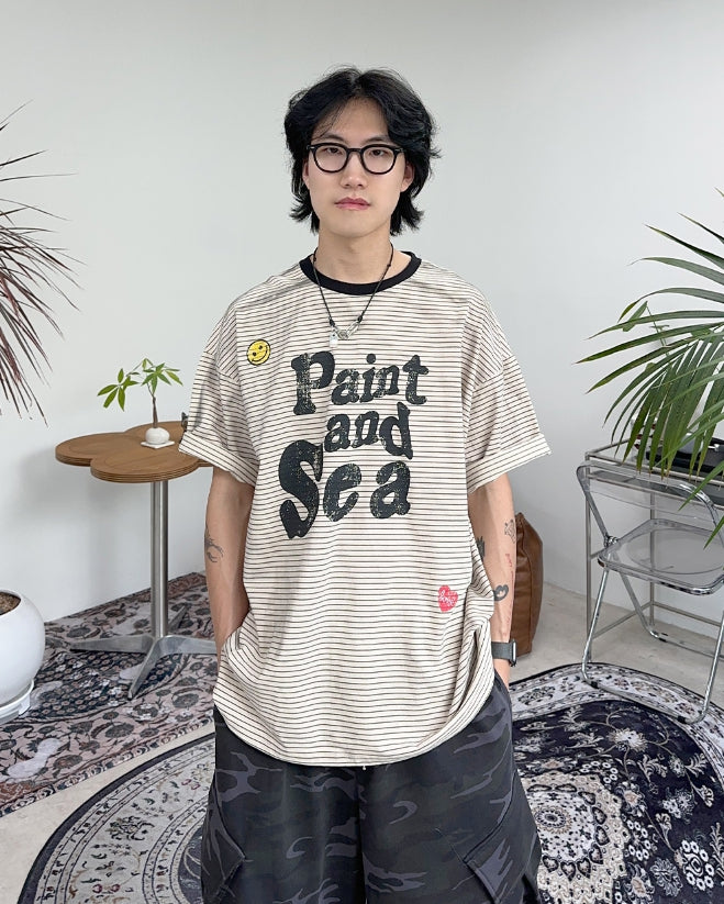 ルビースマイルボーダーオーバーTシャツ