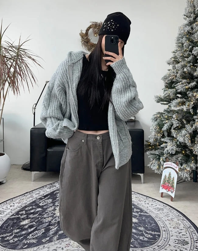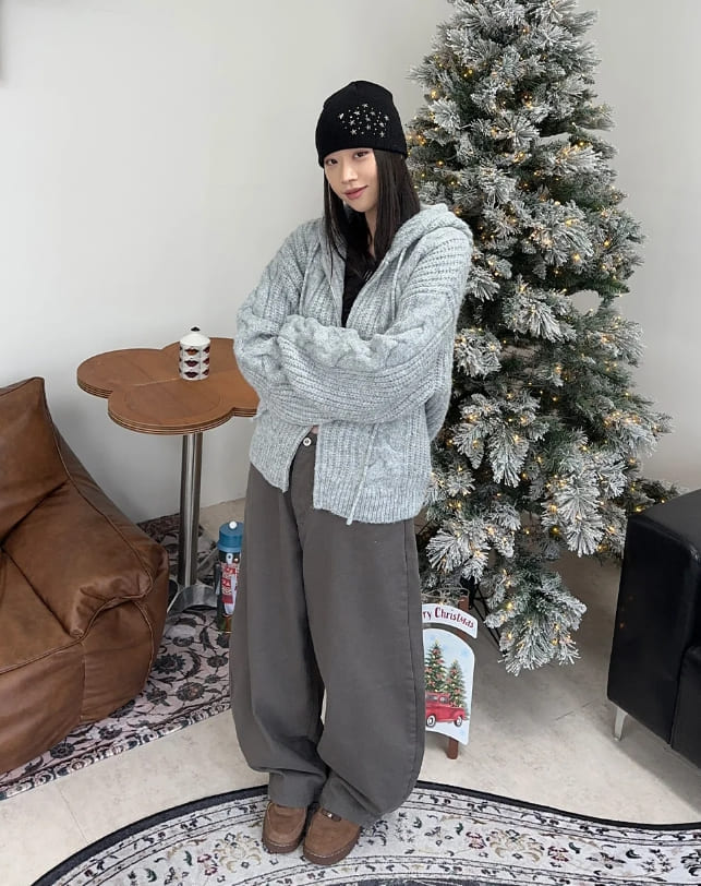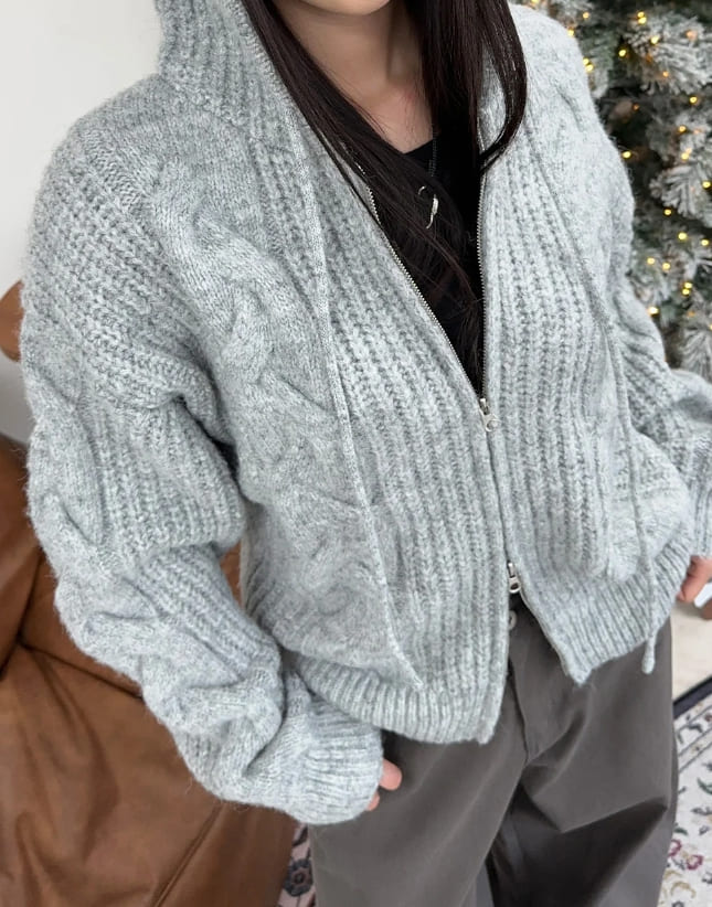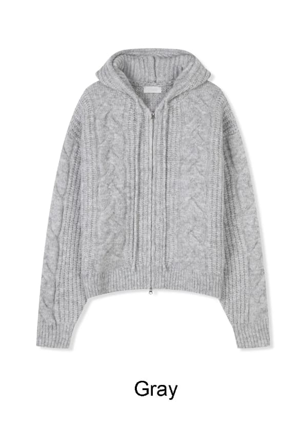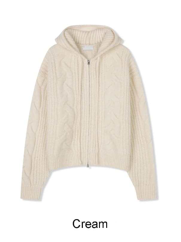 ルインヘビーウールニットフードジップアップ