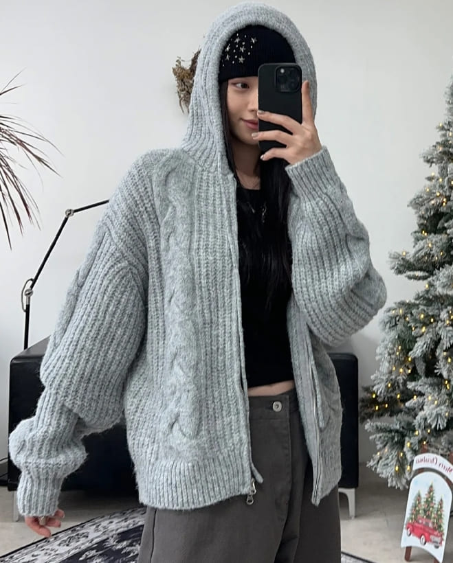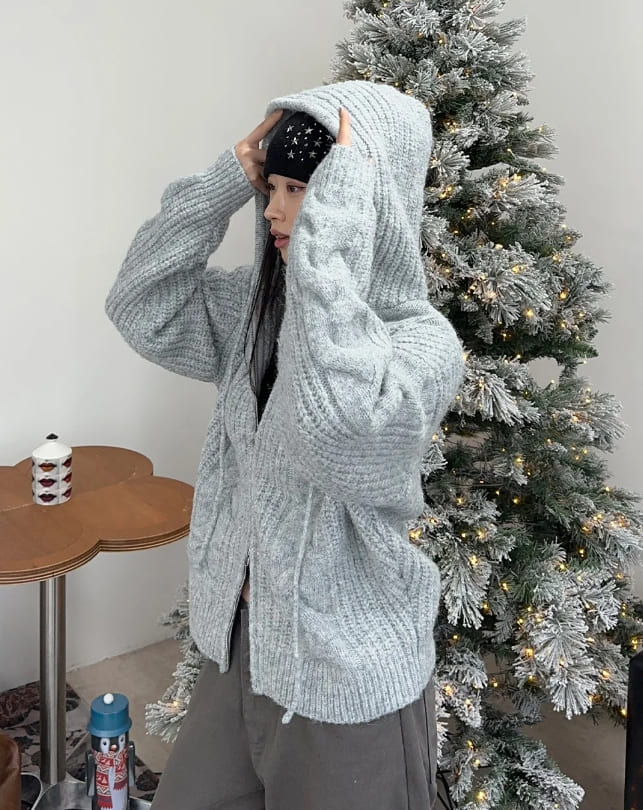 Ruin Heavy Wool Knit Hooded Zip-Up