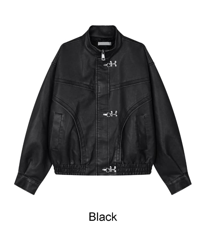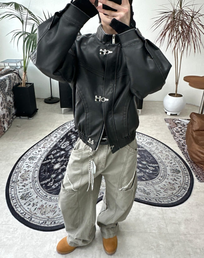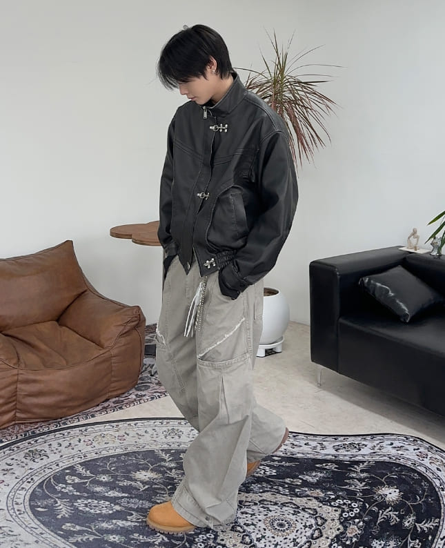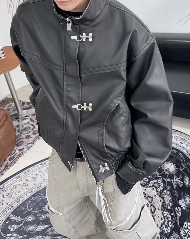 トニードフックウォッシュ加工レザージャンパー
