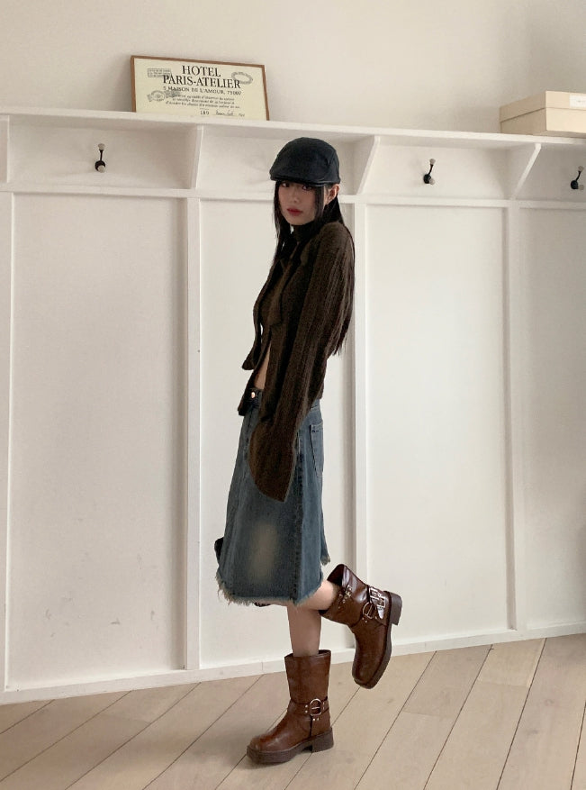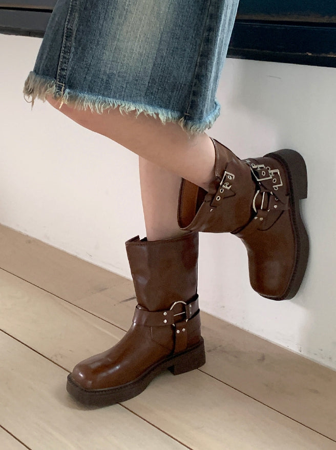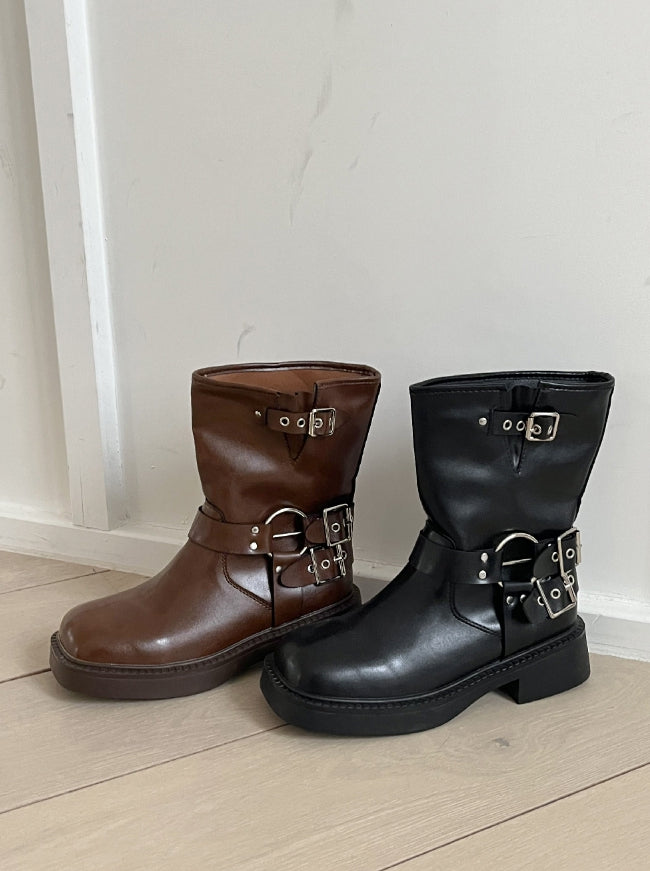 Fournette Western Chain Belt Leather Ankle Middle Boots