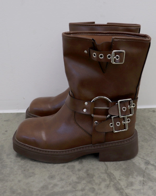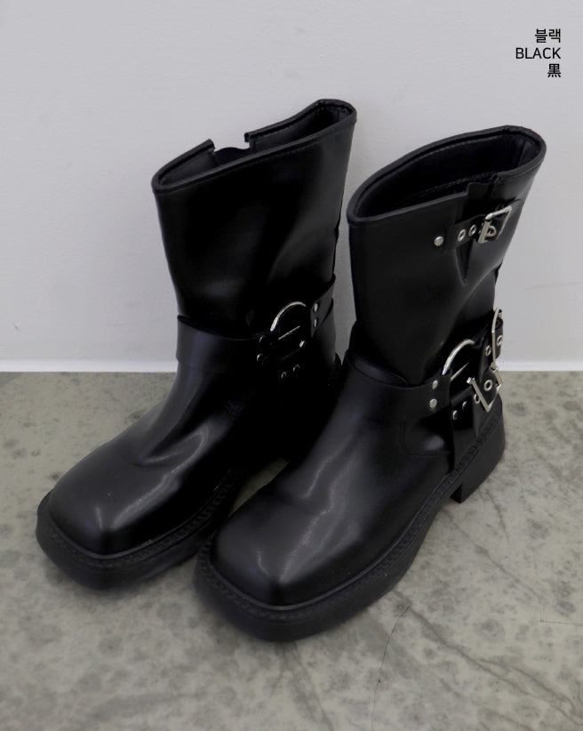 フォーネットウエスタンチェーンベルトレザーアンクルミドルブーツ