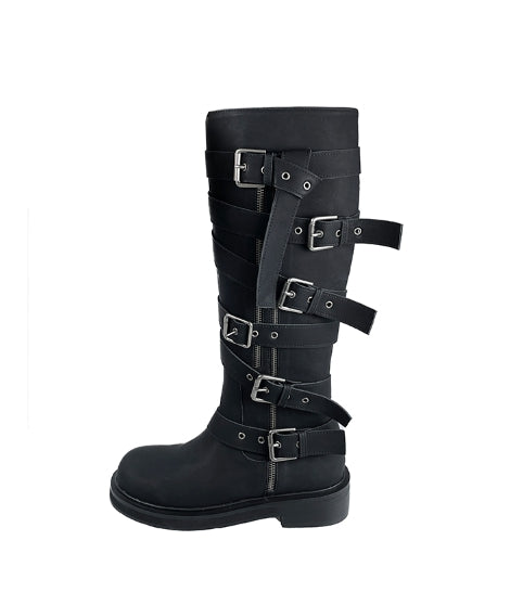 Dusen Strap Buckle Long Boots