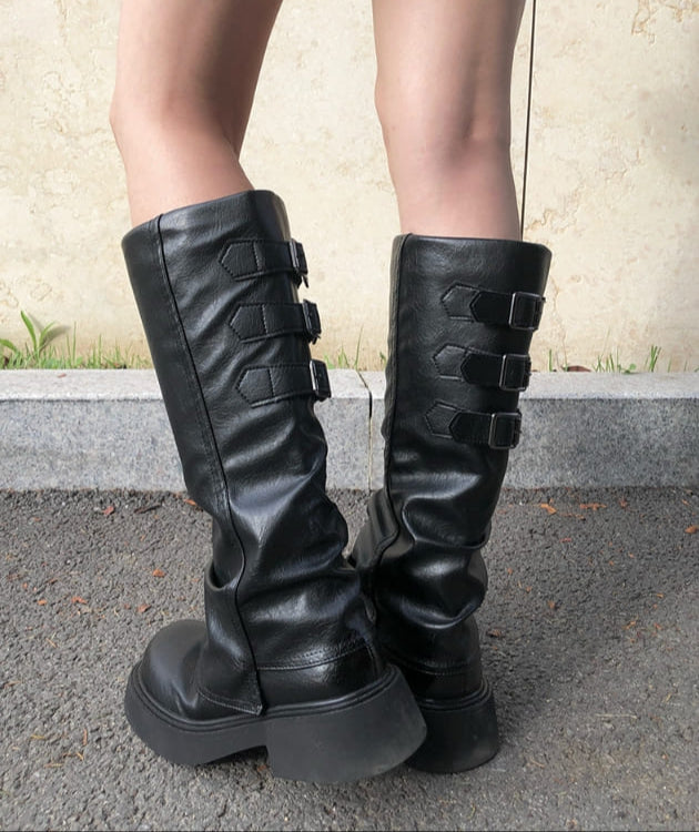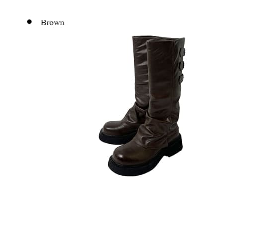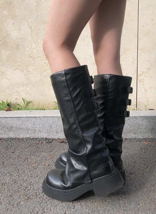 Hapa Leather Warmer Buckle Platform Sole Long Boots