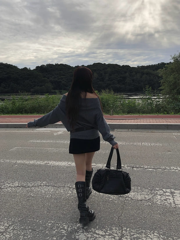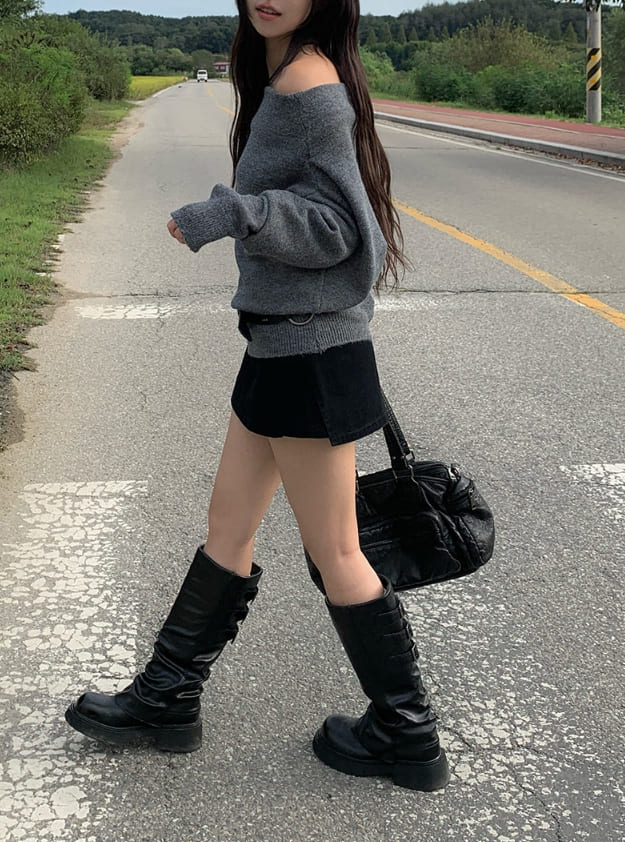 ハパレザーウォーマーバックル厚底ロングブーツ