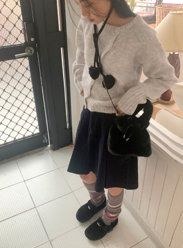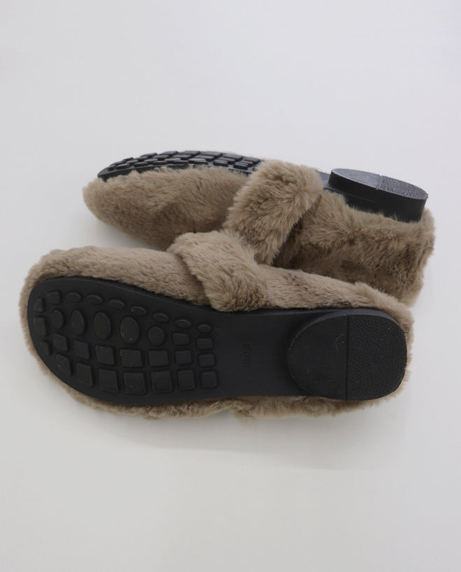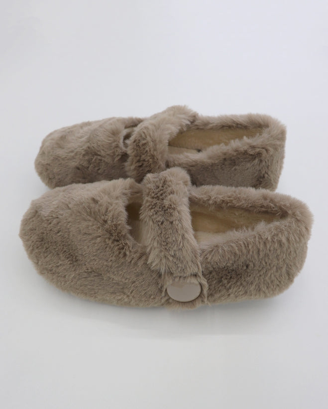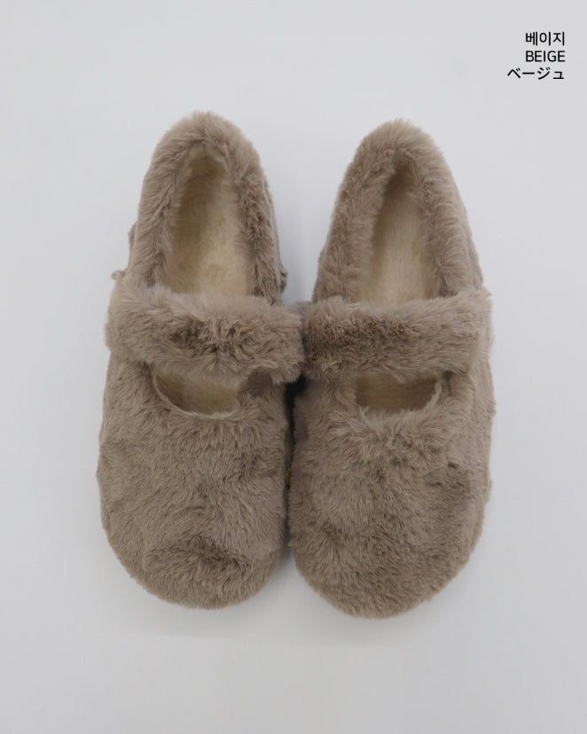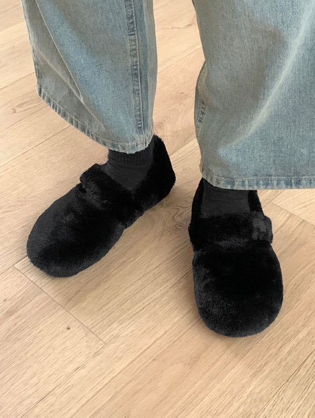 Hoya Winter Fur Angora Velcro Flat Mary Jane Loafers