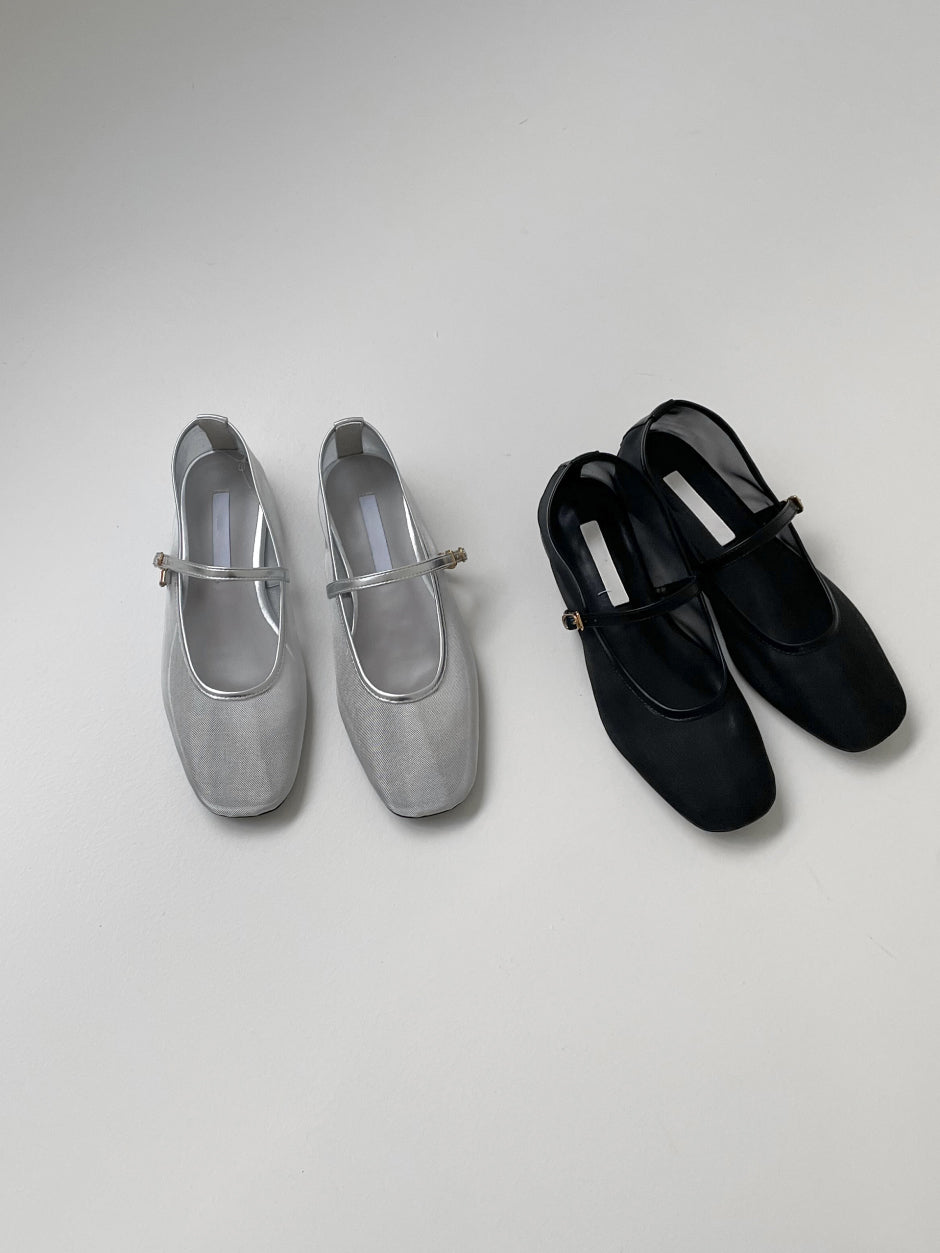 メッシュシースルーメアリージェーンフラットシューズ