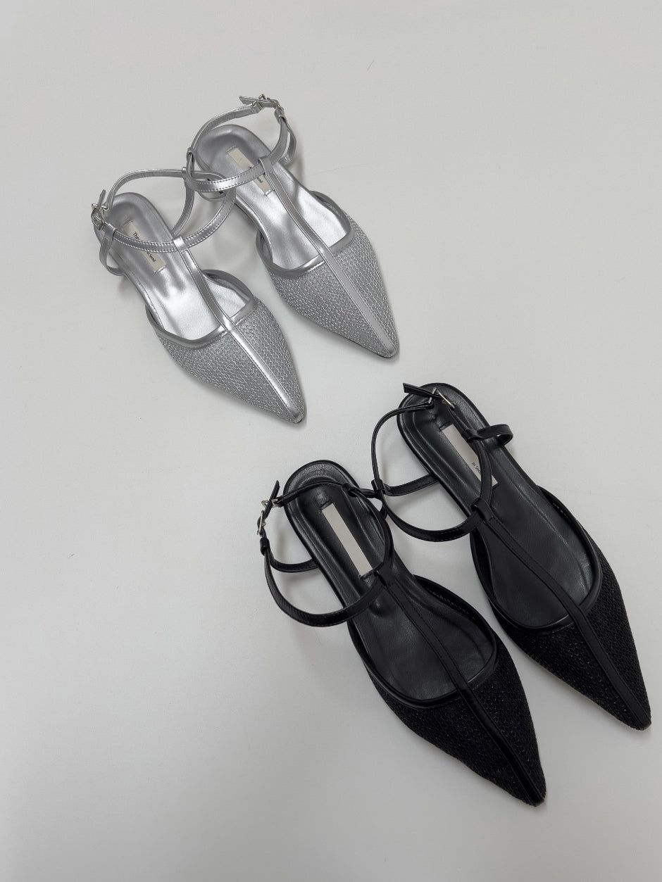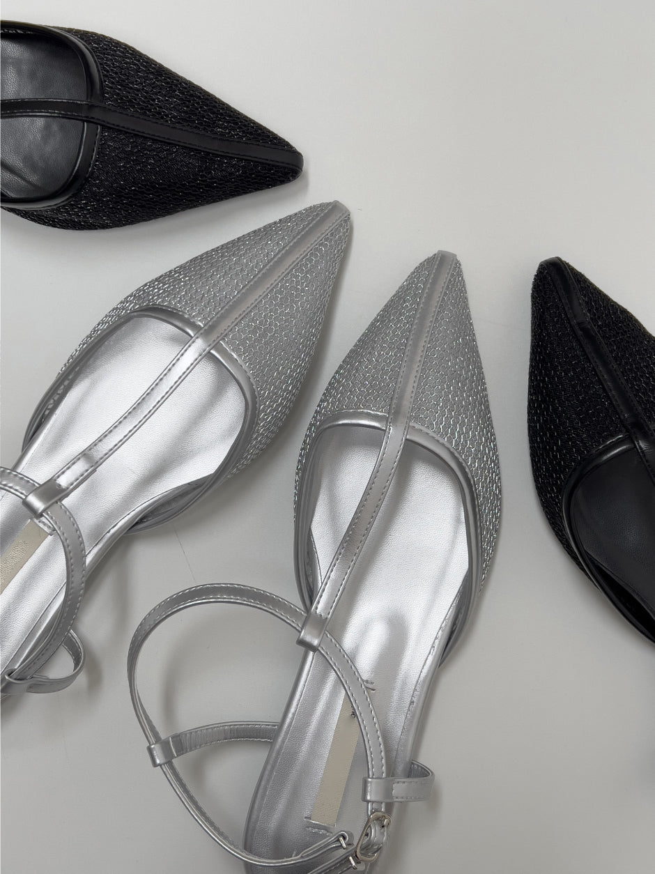 メッシュスティレットフラットシューズ