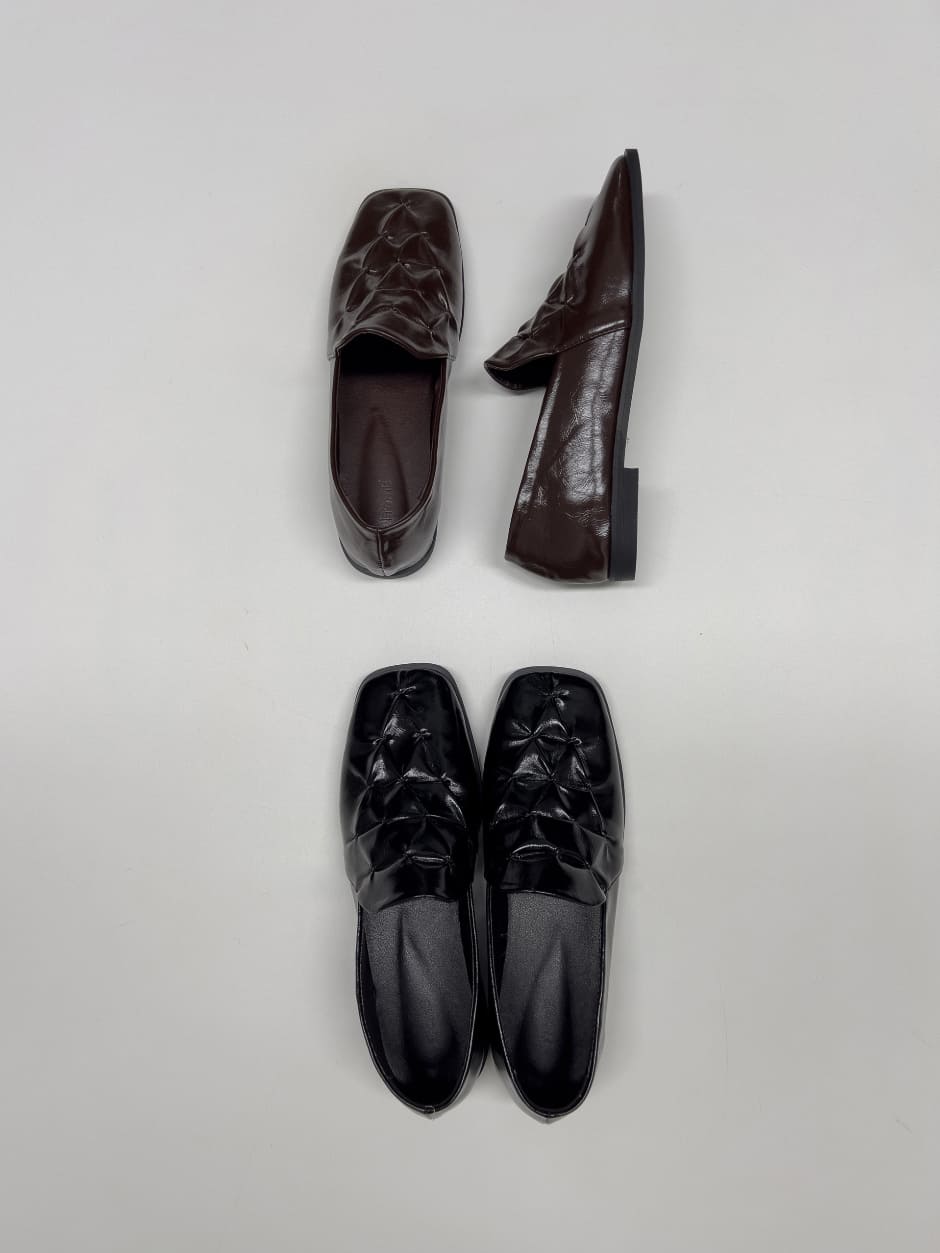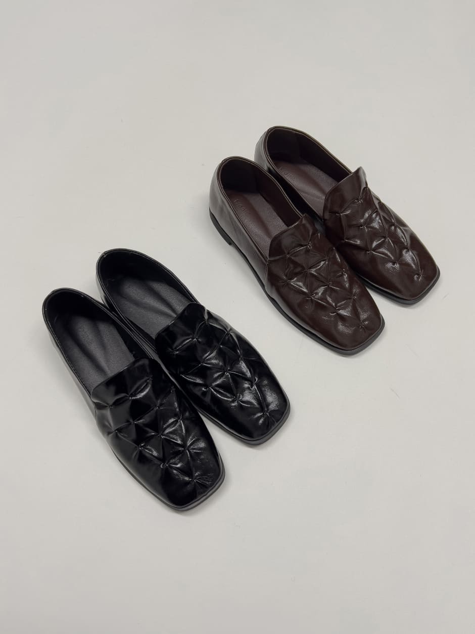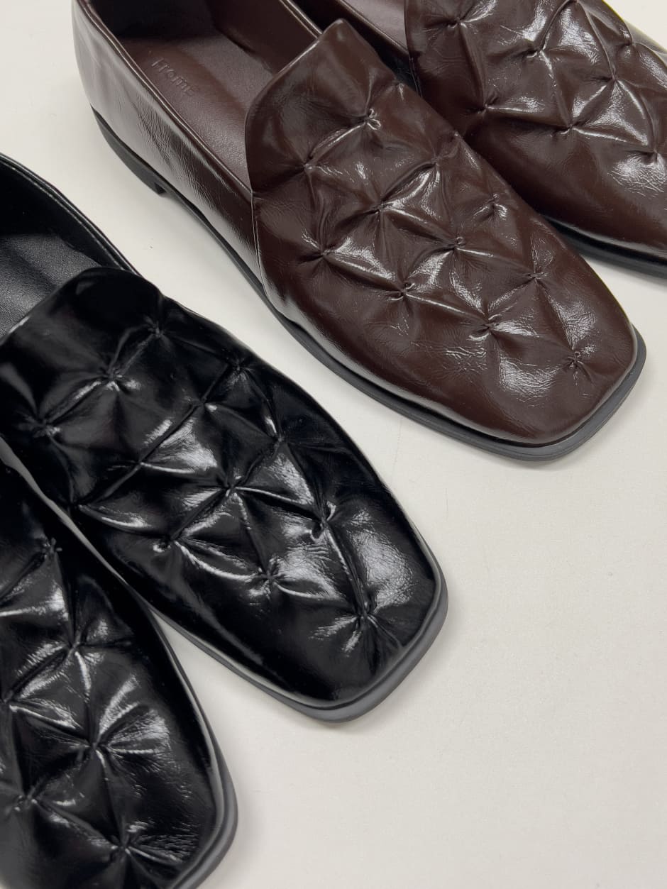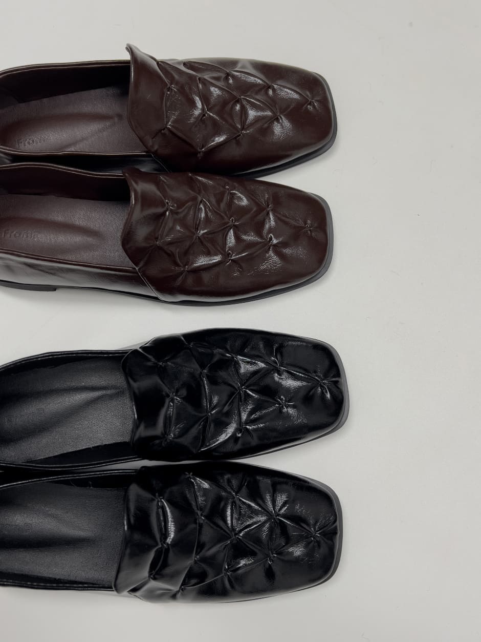 Shirring Enamel Square Toe Loafers