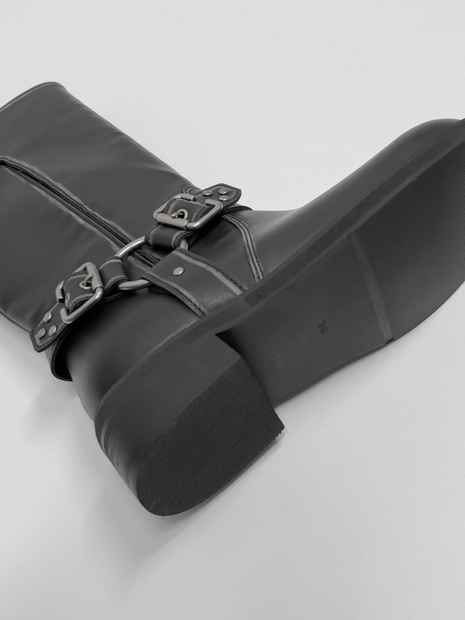 Studded Vintage Buckle Middle Boots