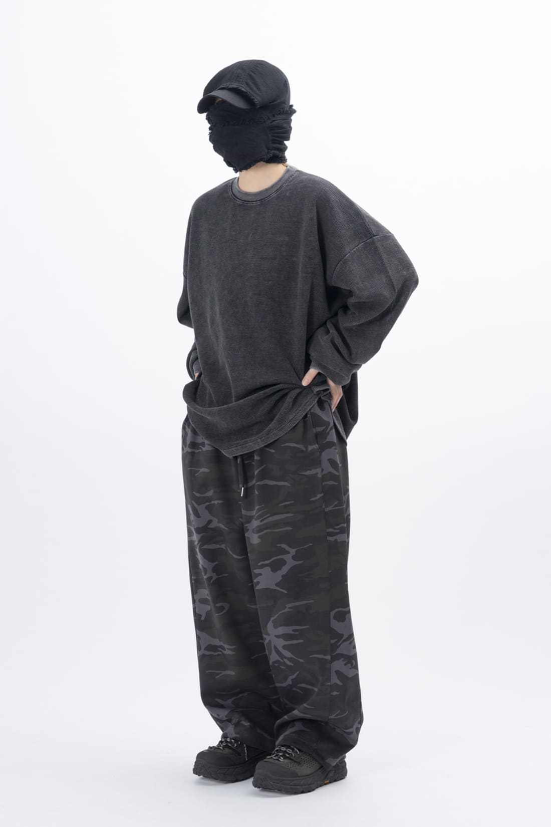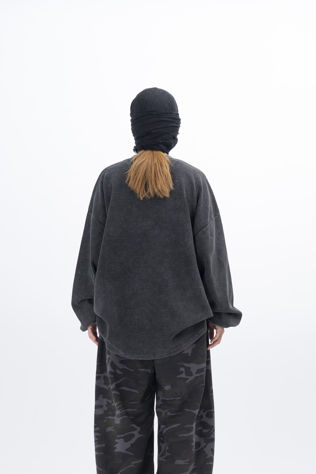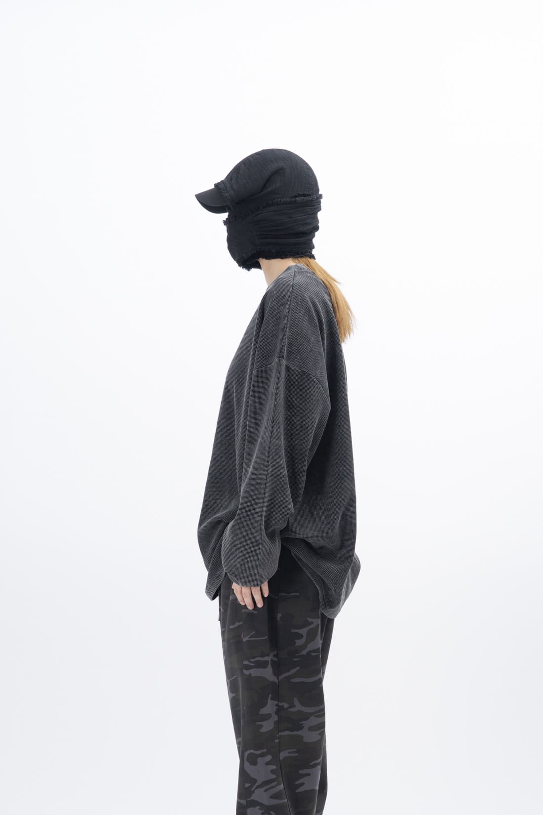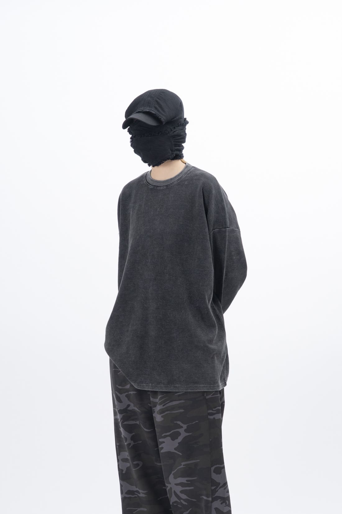 セルストーンウォッシュ加工ワッフル長袖Tシャツ