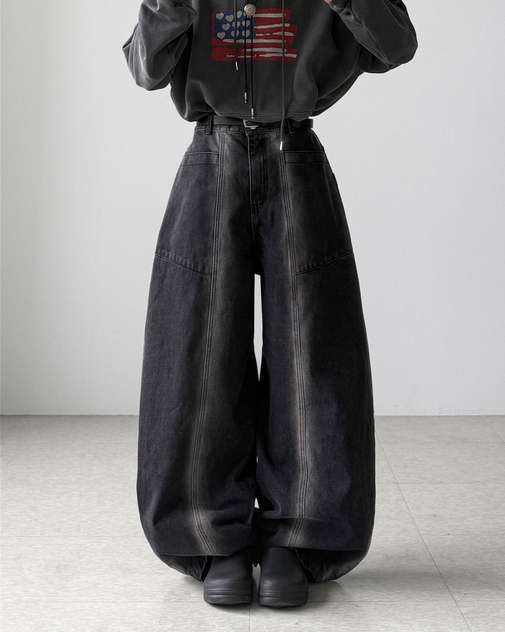 -ONE SIZE (ウエスト(ゴム)72-94 ヒップ- 股上43 股下65 もも周り84 裾周り52 総丈108)