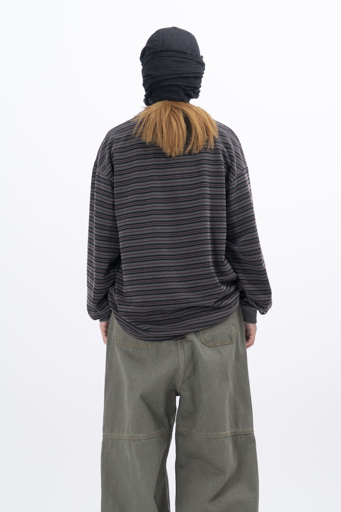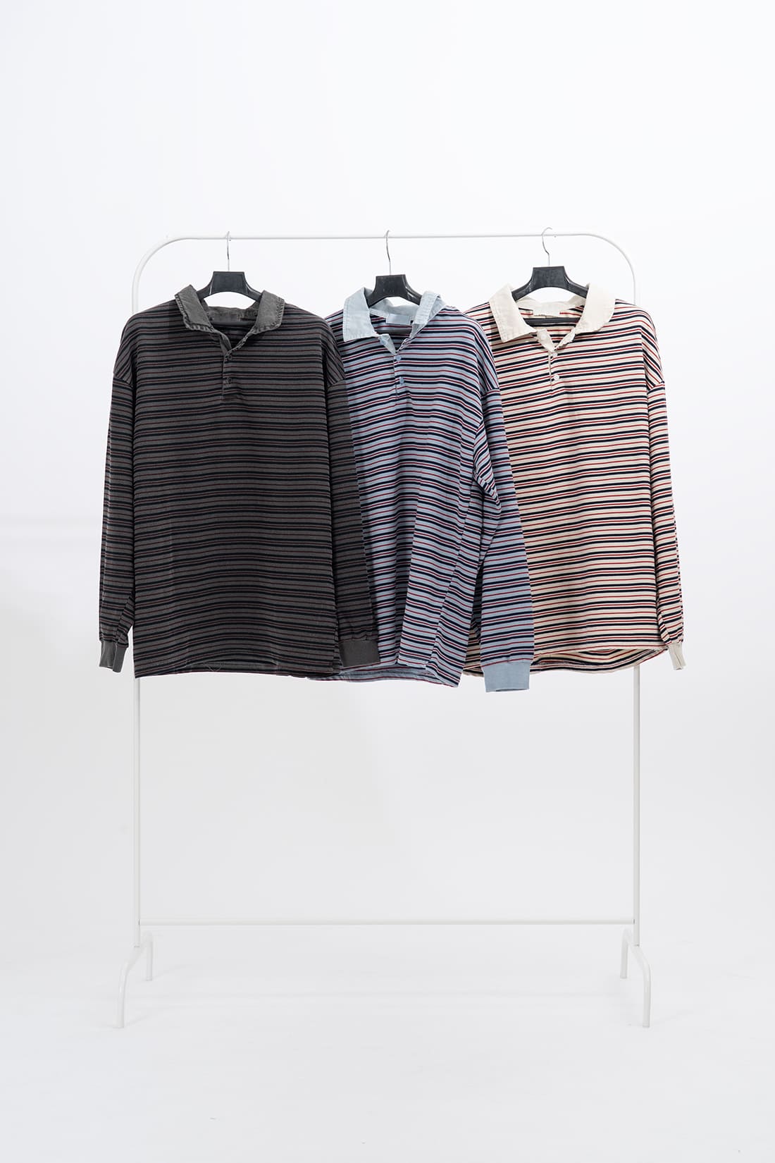 Juk Collar Stripe Pigment Long Sleeve T-Shirt