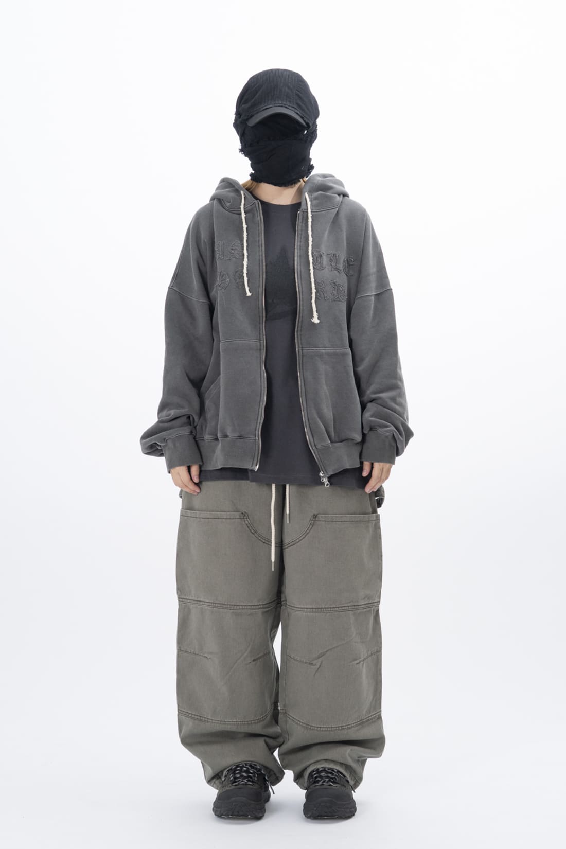 オリドピグメント染色刺繍フードジップアップ