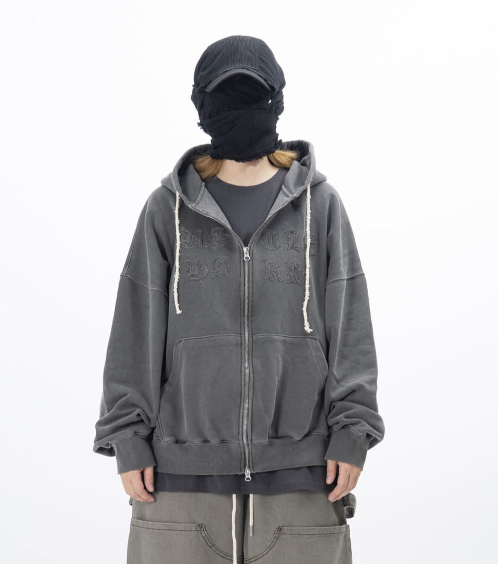 Olide Pigment Dyed Embroidery Hooded Zip-Up
