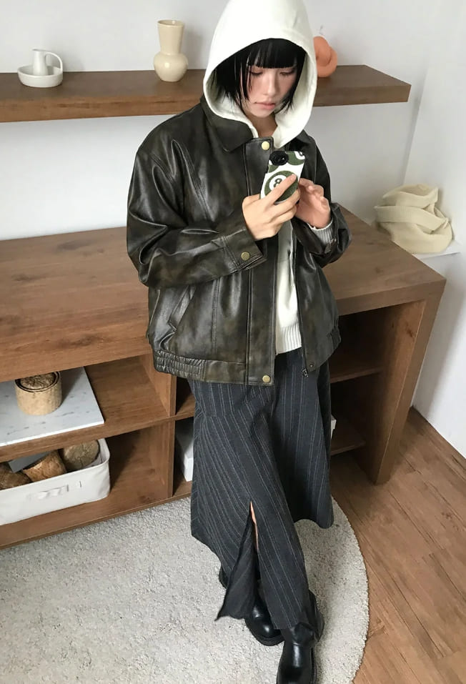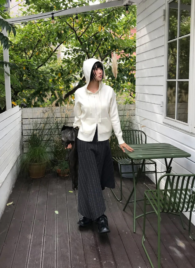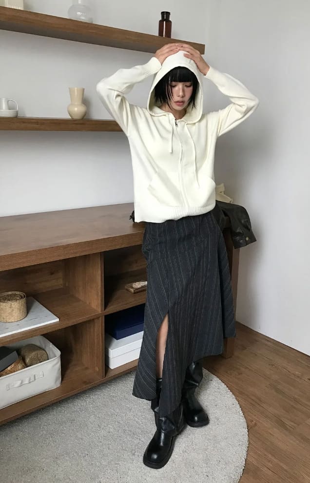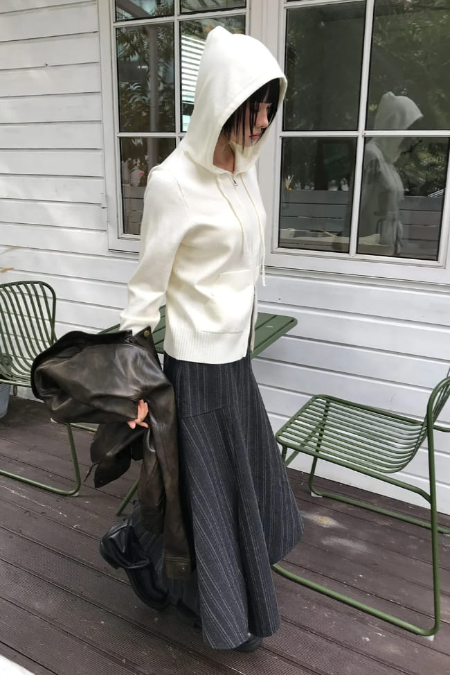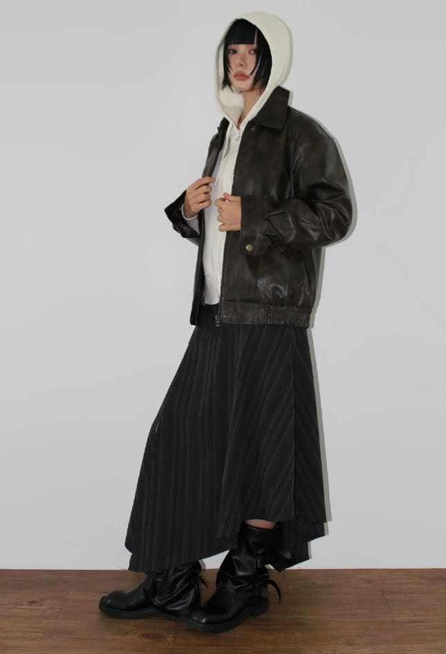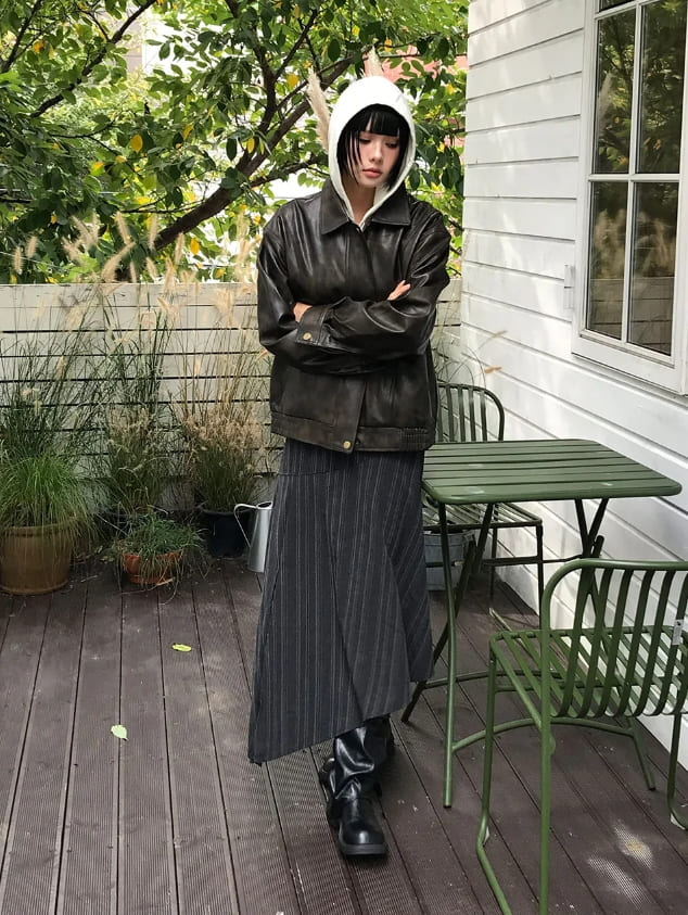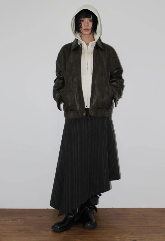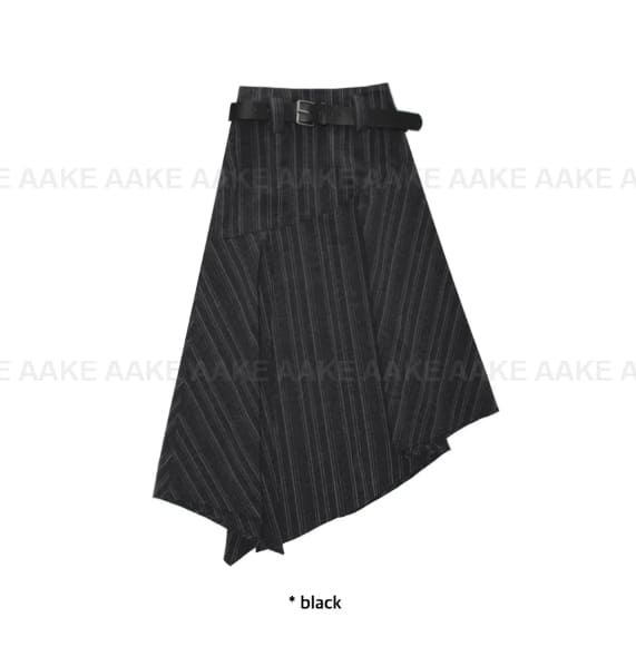 [BELT SET] SLANT STRIPE DRAPE SKIRT