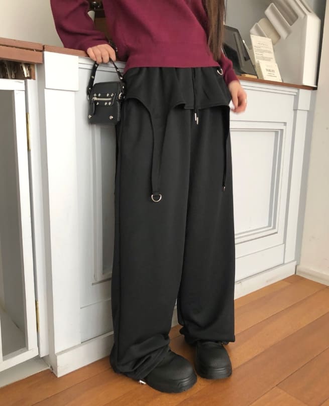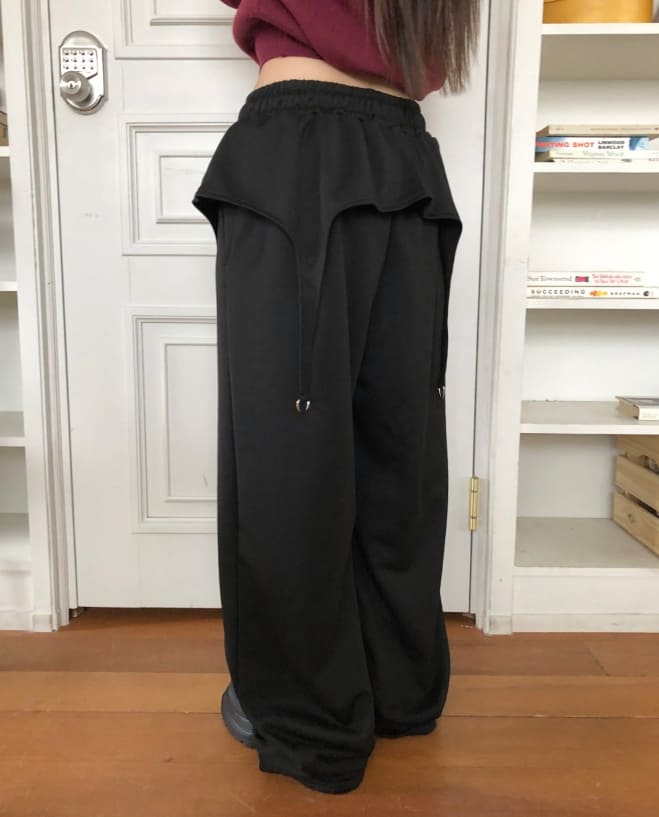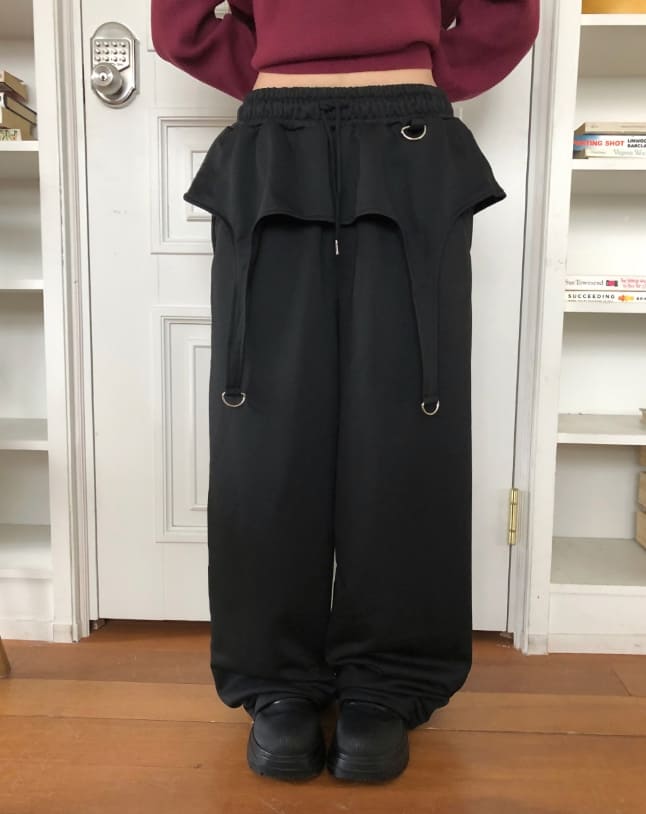 Herr Strap Banding Waist Layered Pile Training Skirt Pants