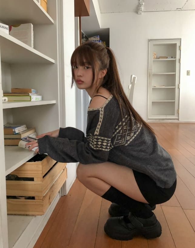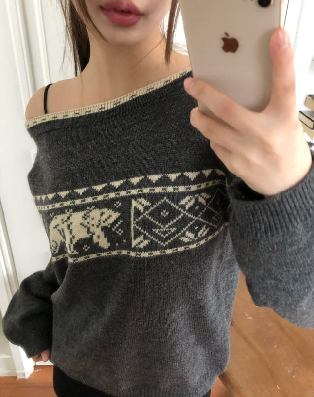 イルームノルディックワンオフショルダールーズフィット長袖ニット