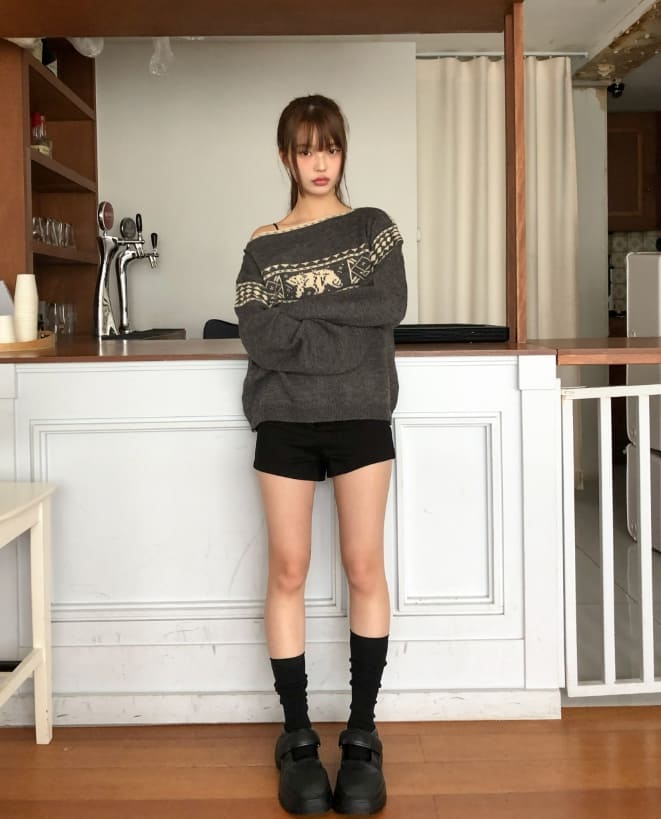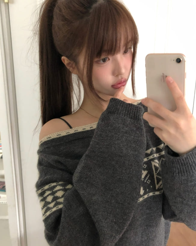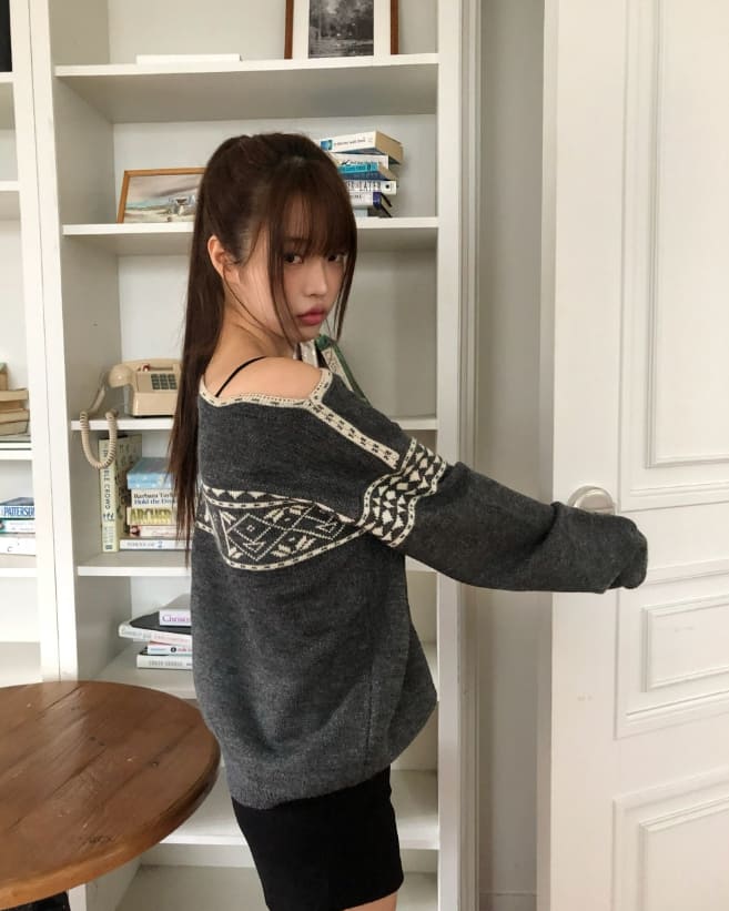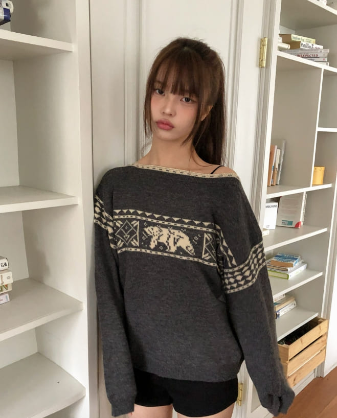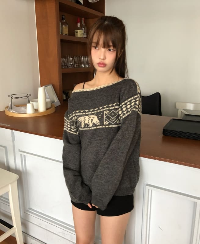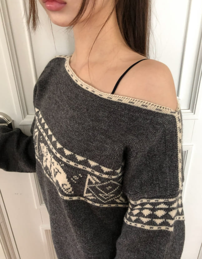 Irum Nordic One-Off Shoulder Loose Fit Long Sleeve Knit