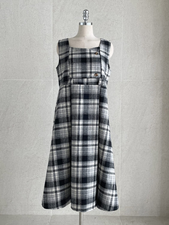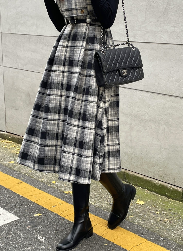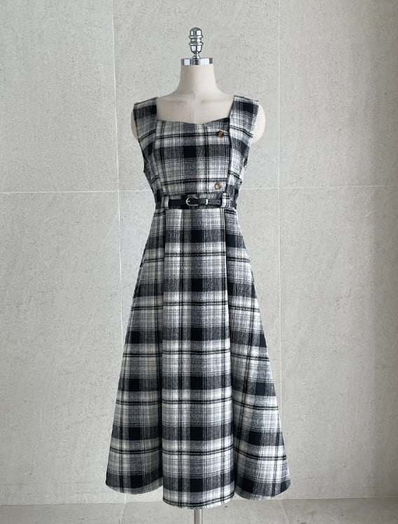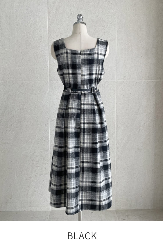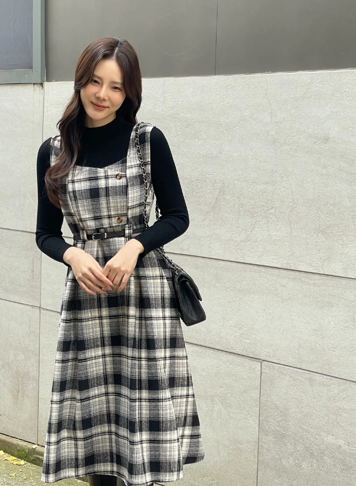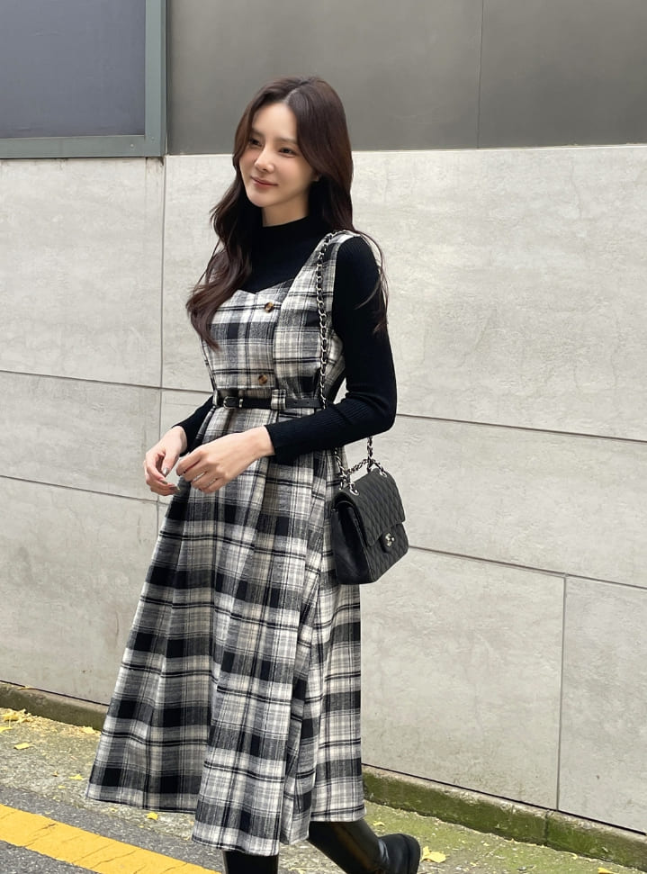 キュレンポーラーニットチェックビスチェワンピースセット(ベルトセット)