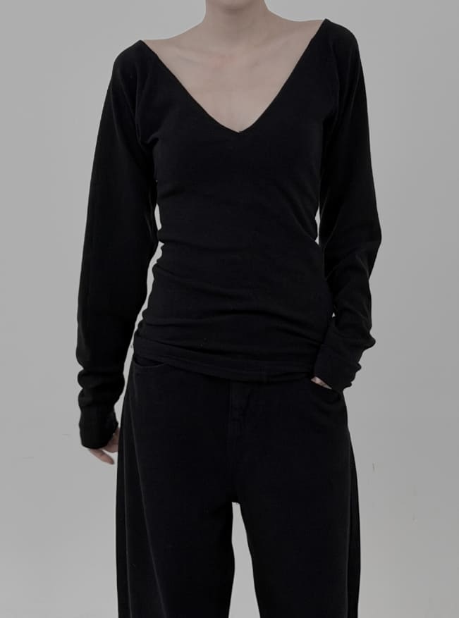 マトンスリーブディープVネックロングTシャツ