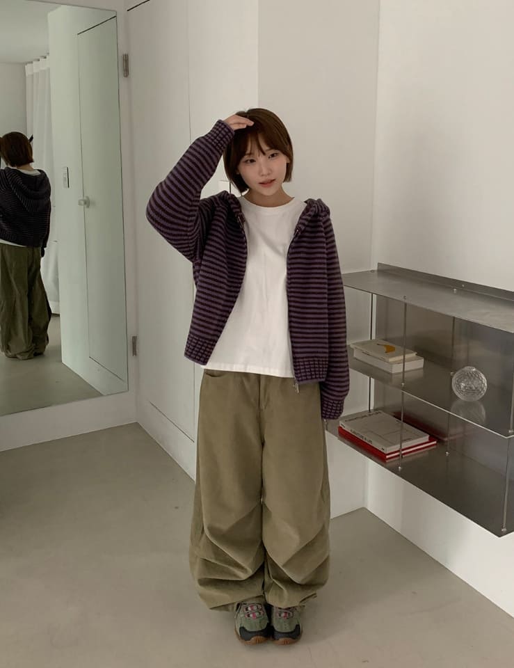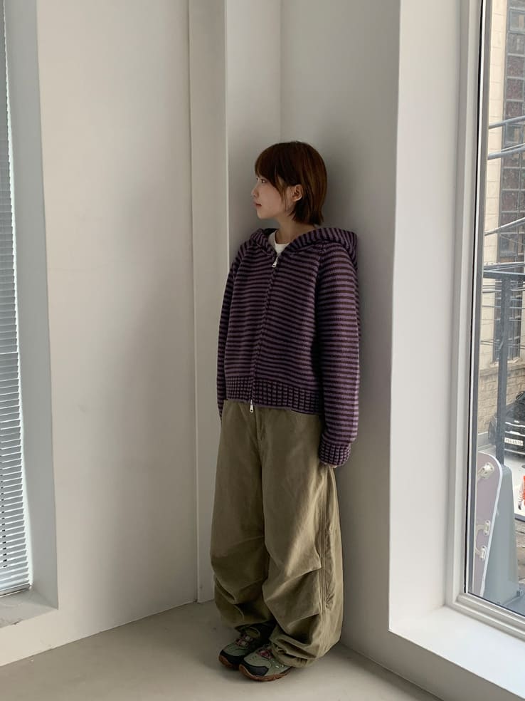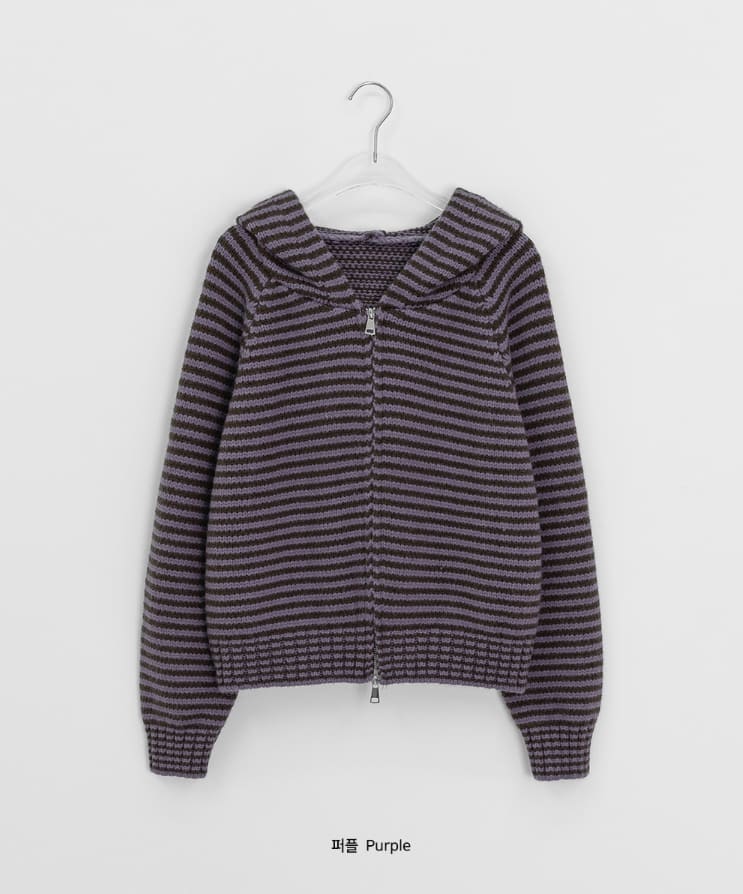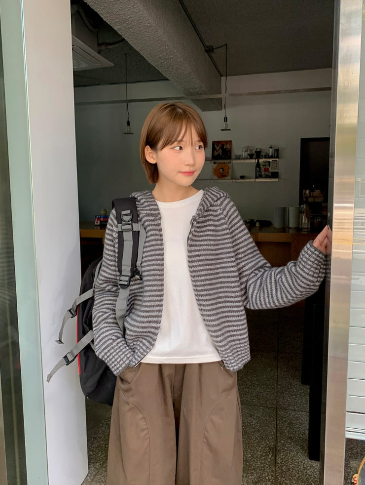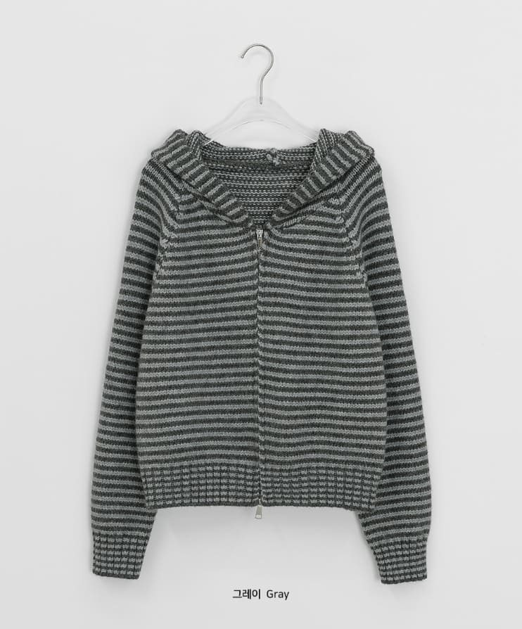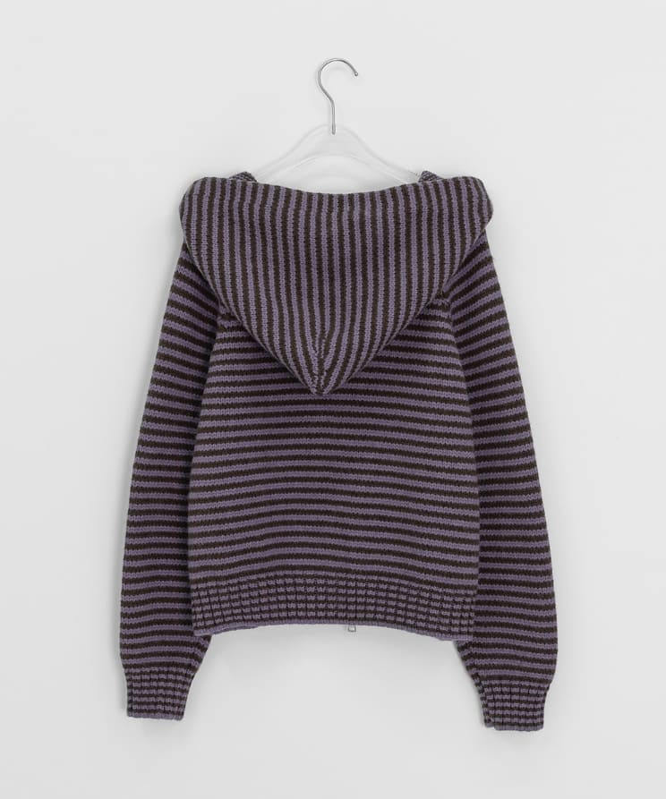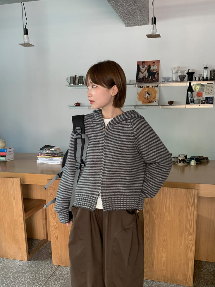 Runro Stripe Two-Way Hood Zip-Up Knit Cardigan