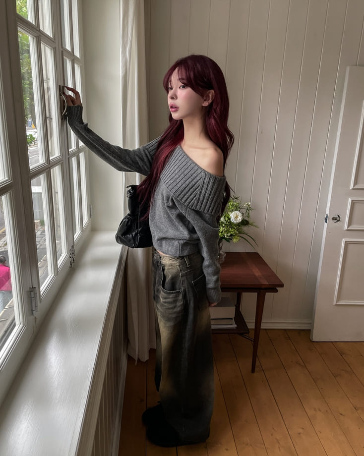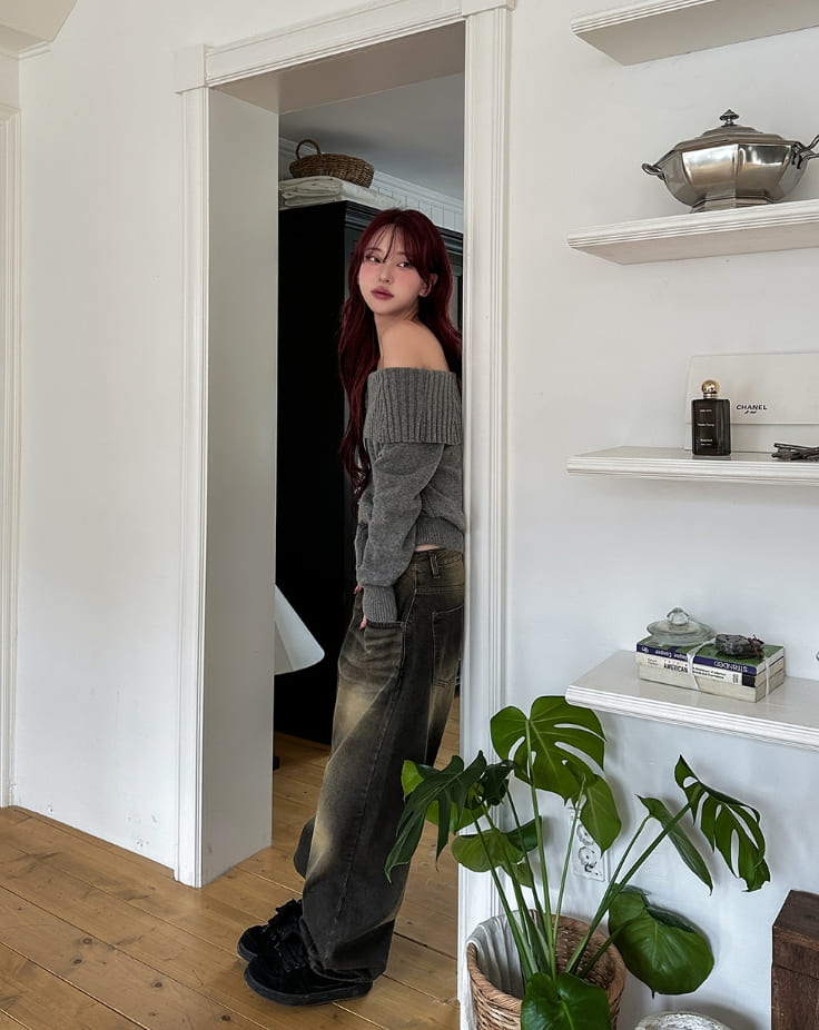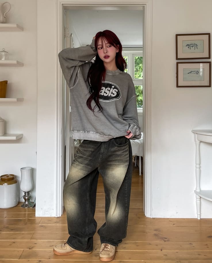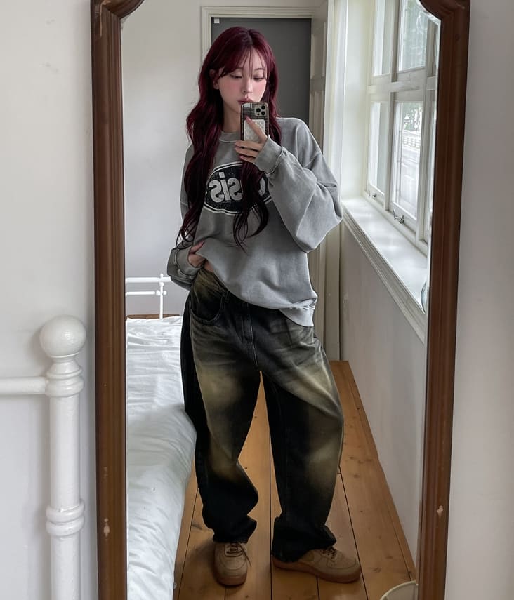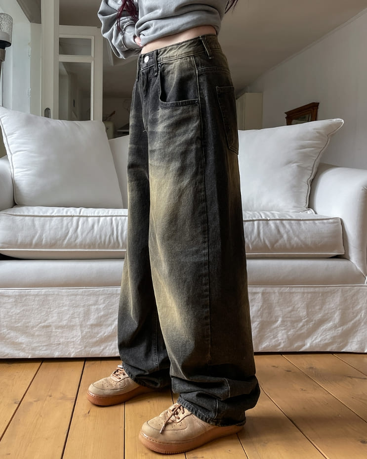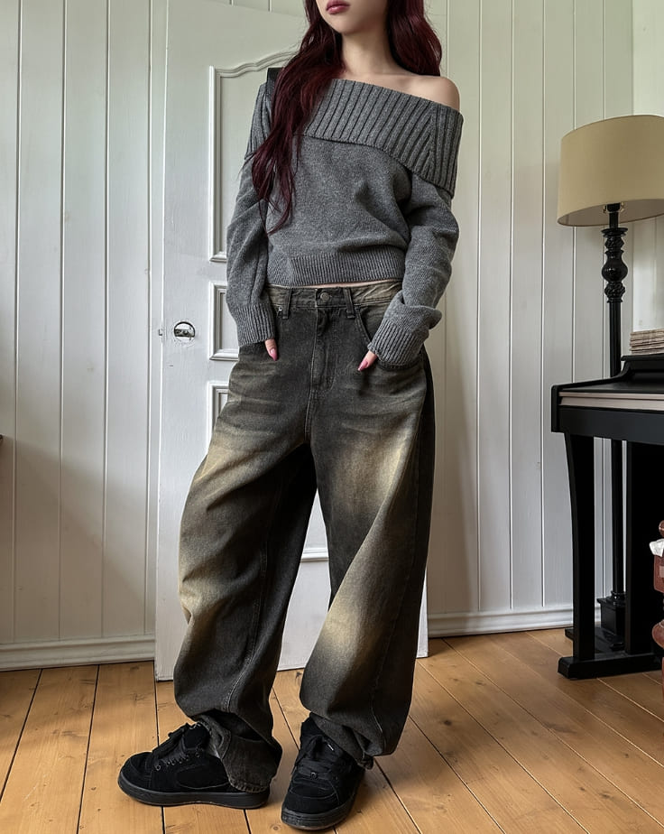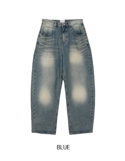 サンディダブルウォッシュ加工バルーンデニムパンツ