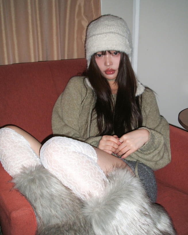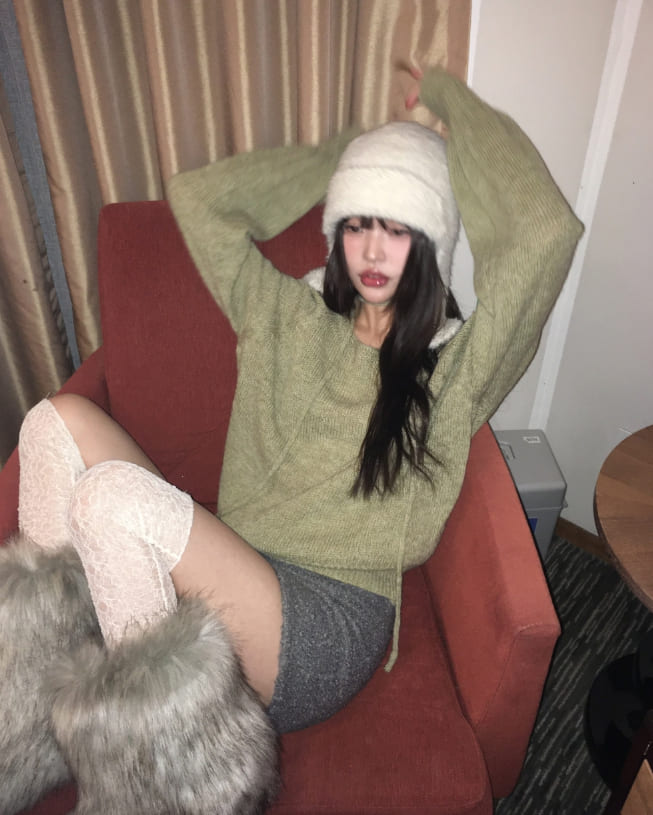 [strap set] Oro string knit round neck wool knit