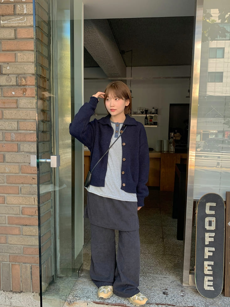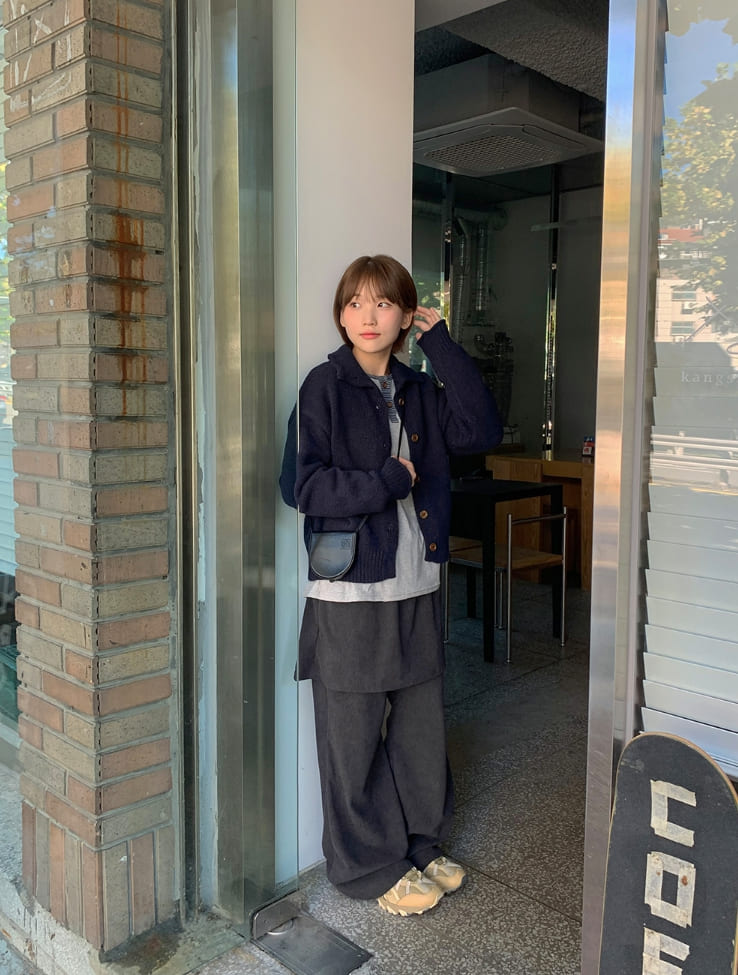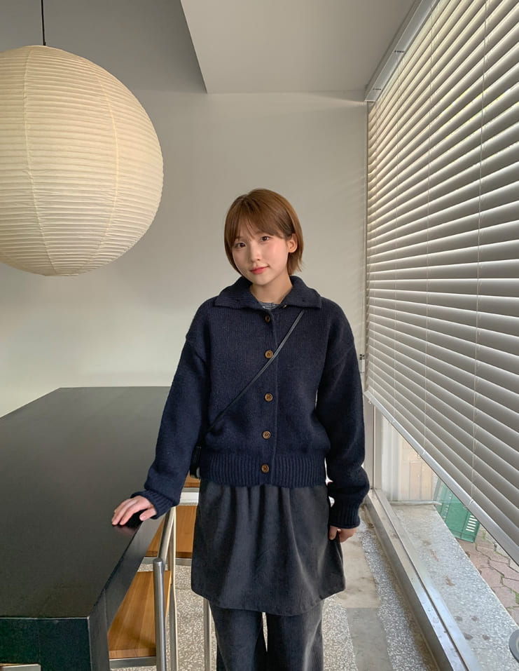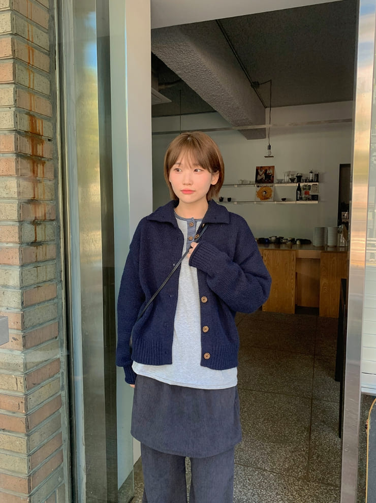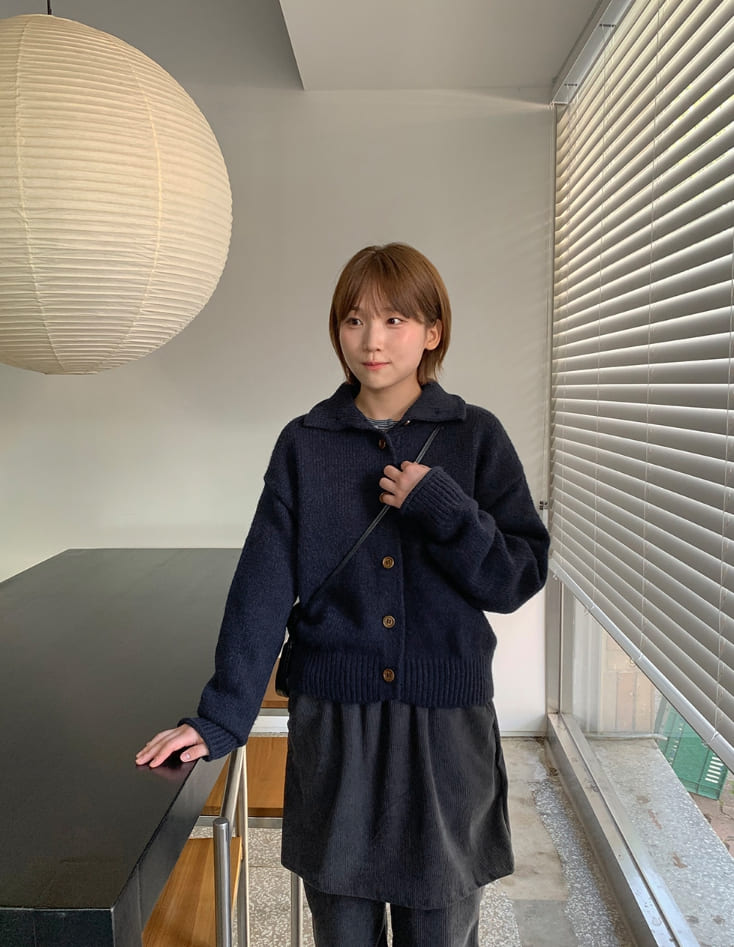 タオリクロップ襟付きニットカーディガン