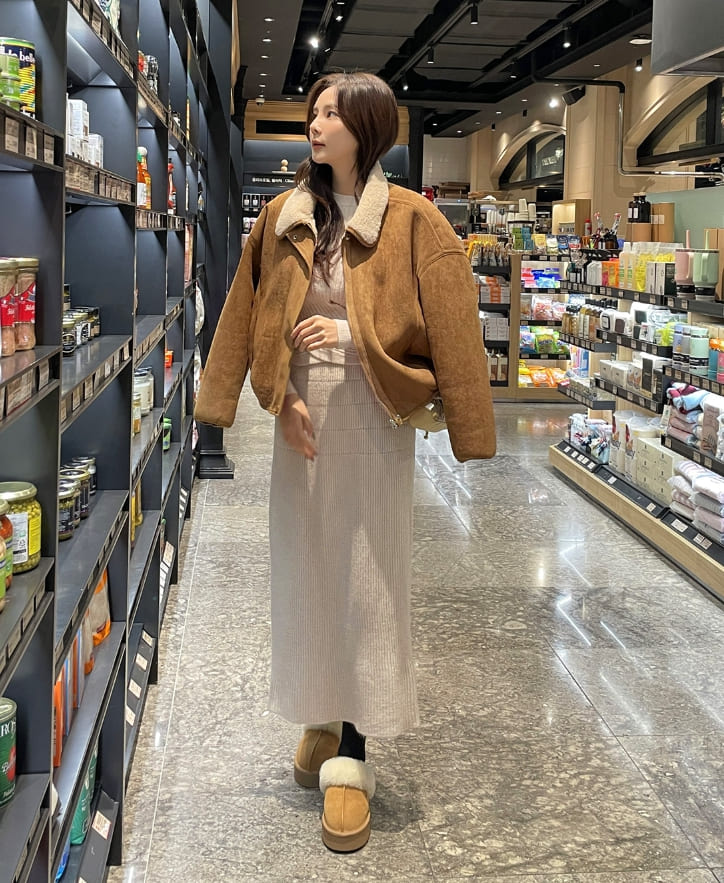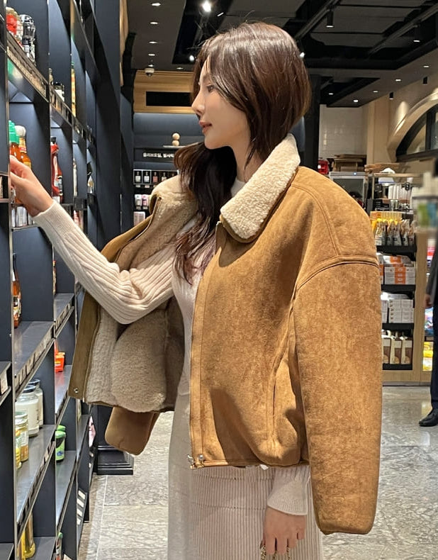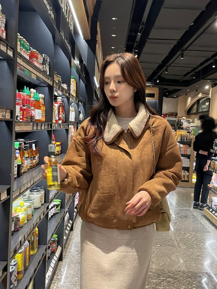 [Wool Lining] Momen Fur Collar Soft Suede Jumper