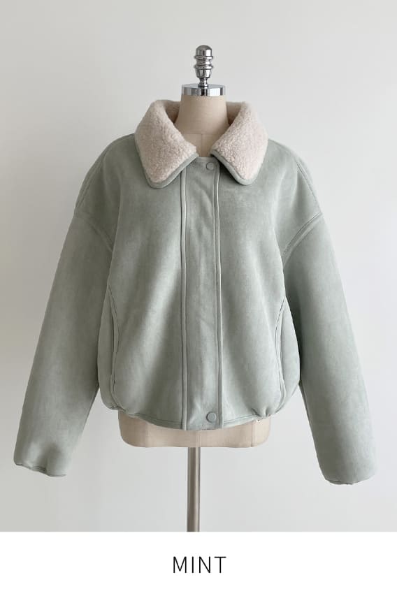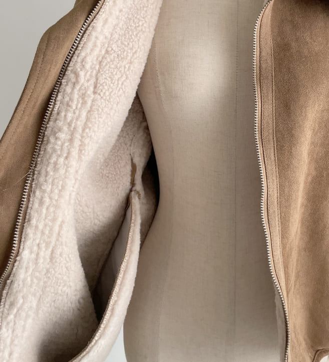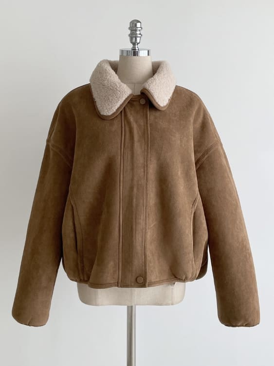 [ウールライニング]モメンファー襟付きソフトスエードジャンパー