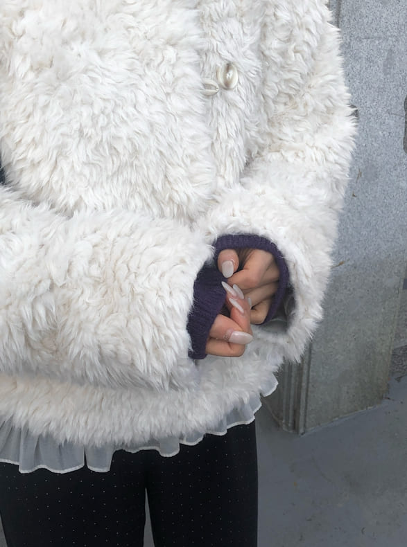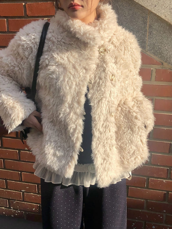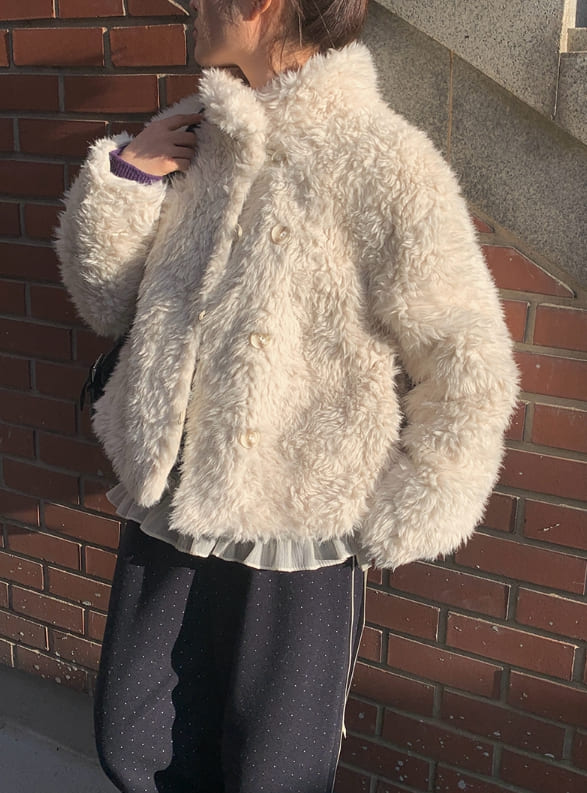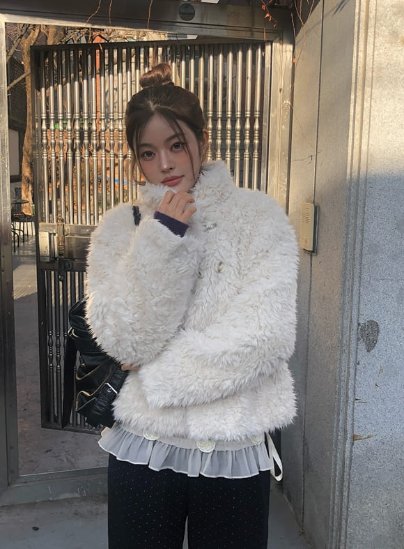 Bart High Neck Button Fur Jacket