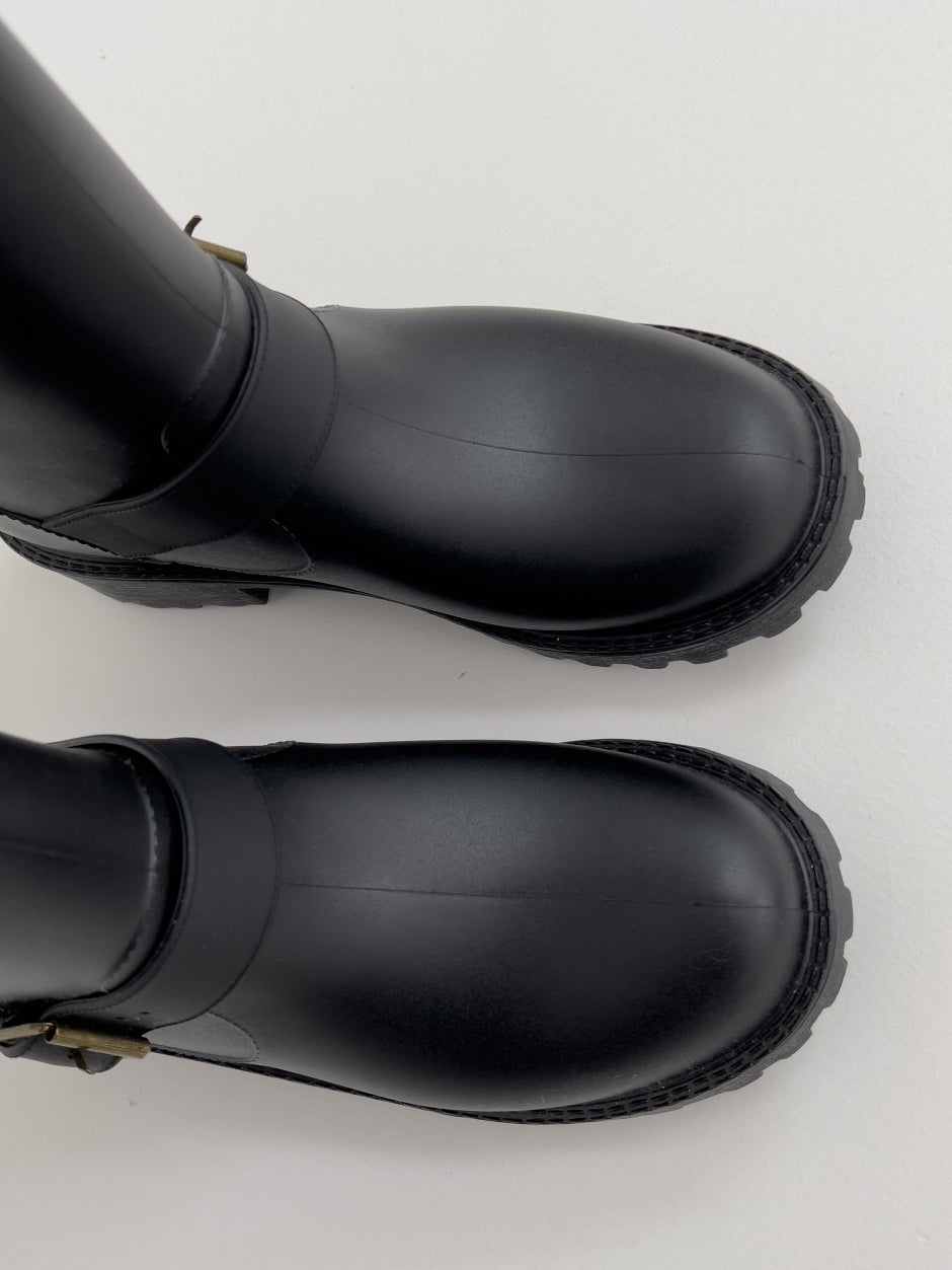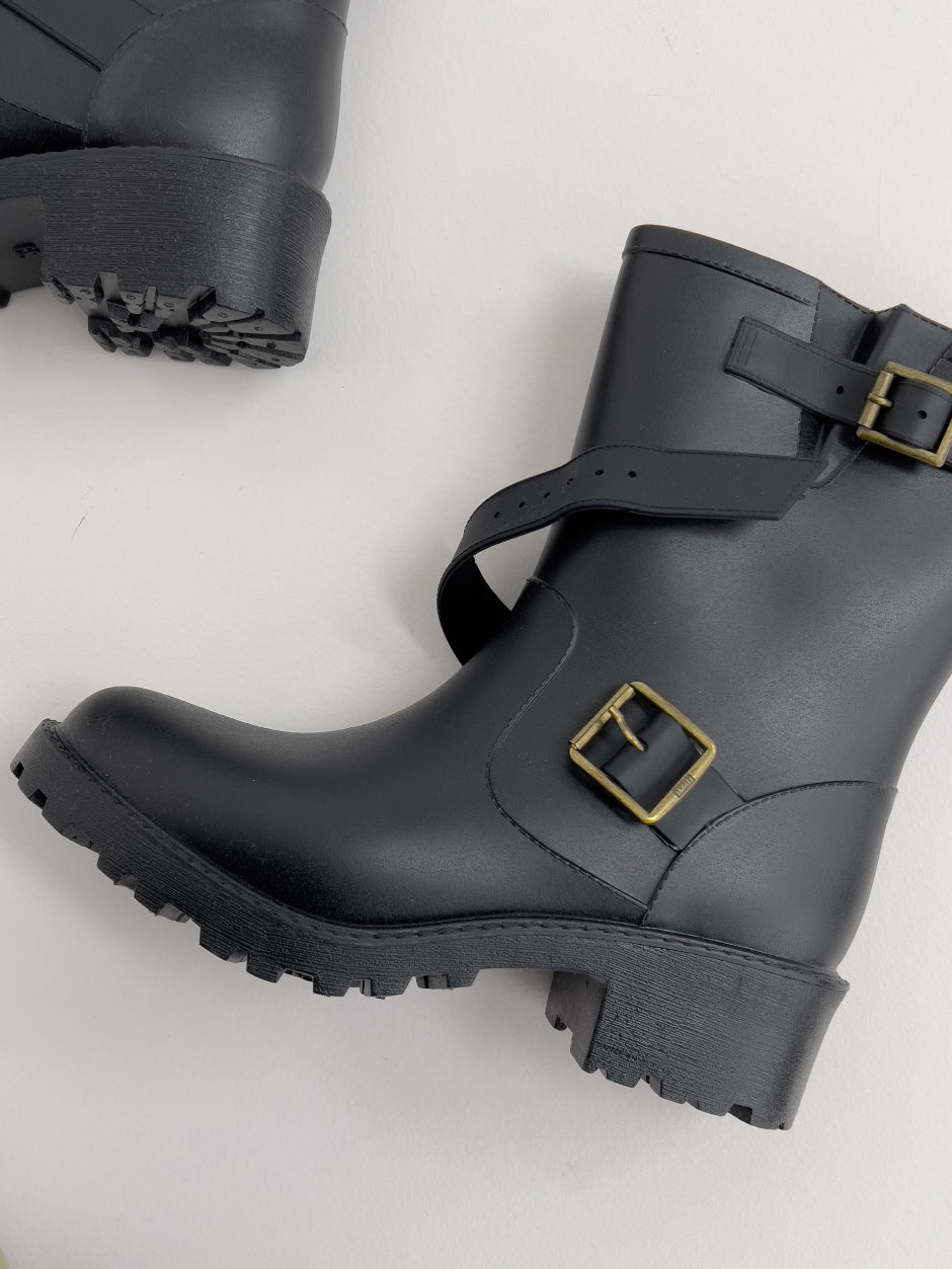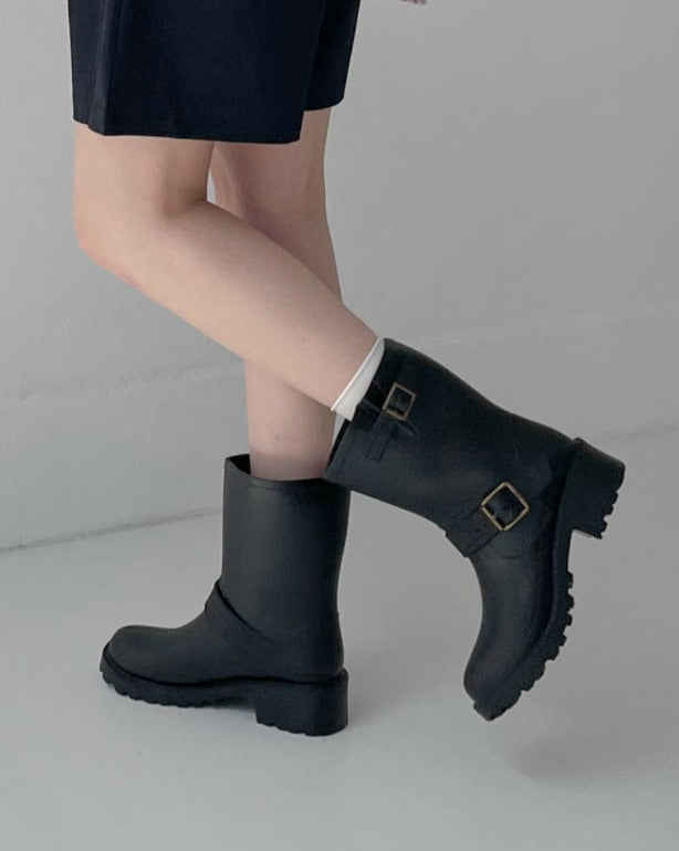 Buckle ankle rain boots