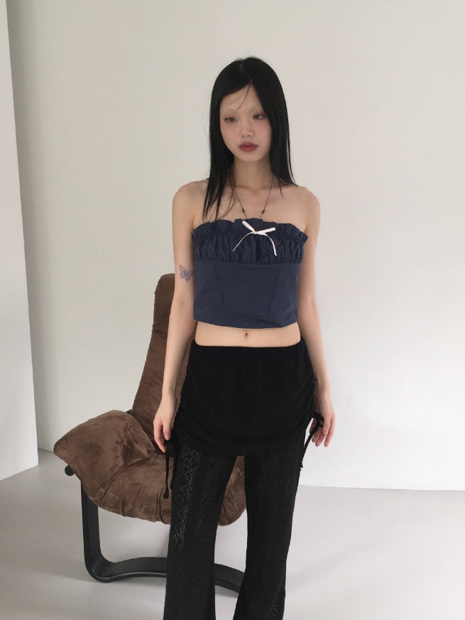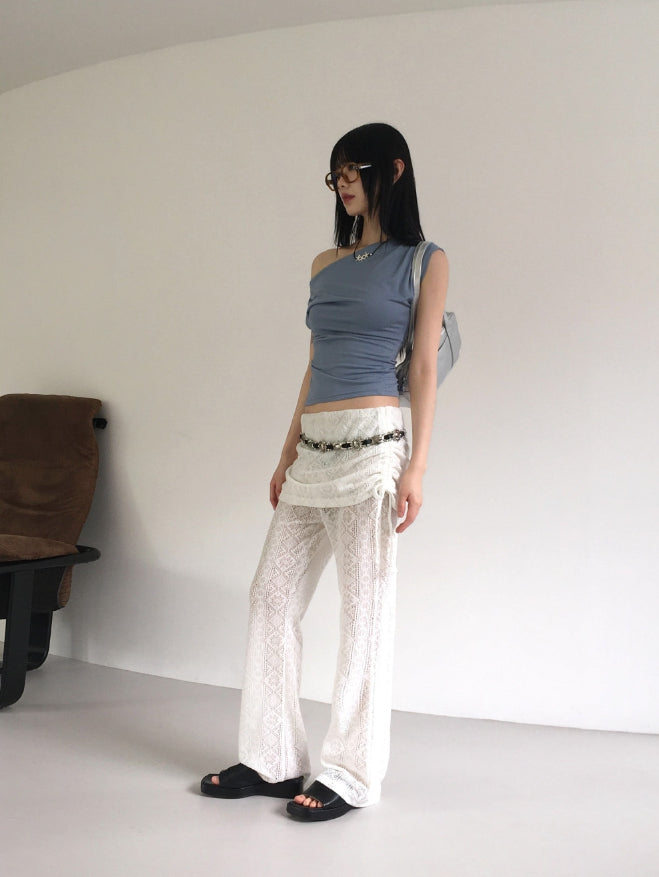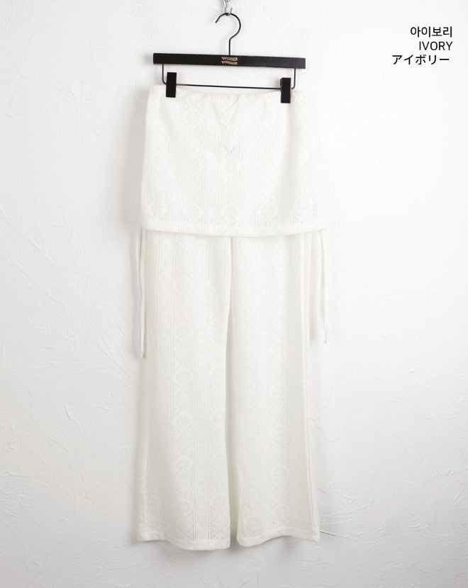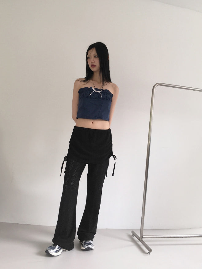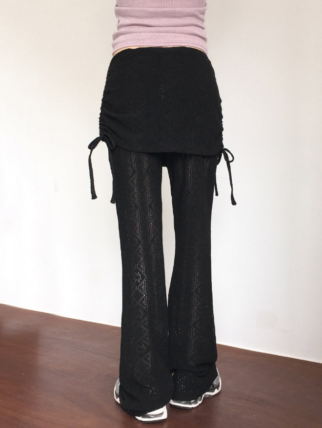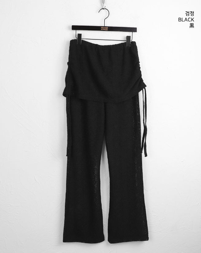 チボンパンチングシースルーシャーリングスカートブーツカットパンツ