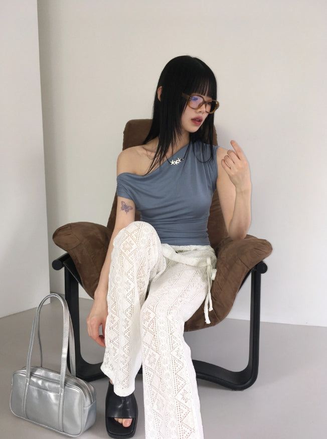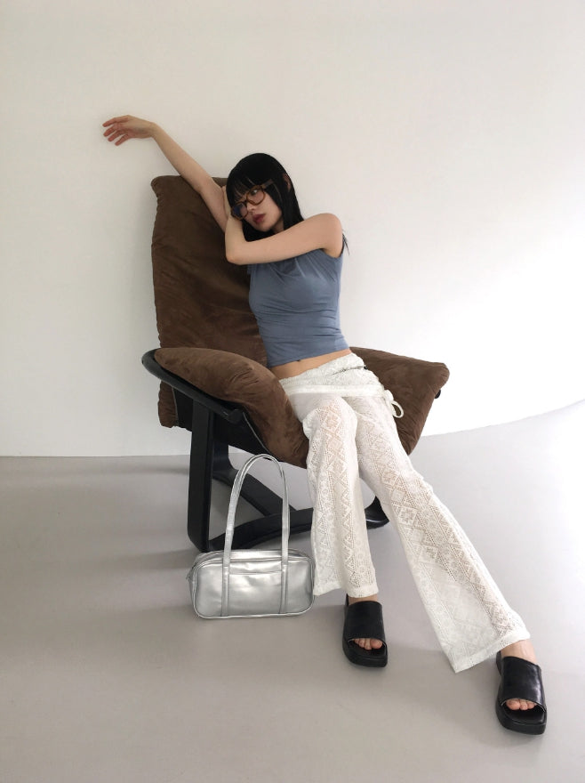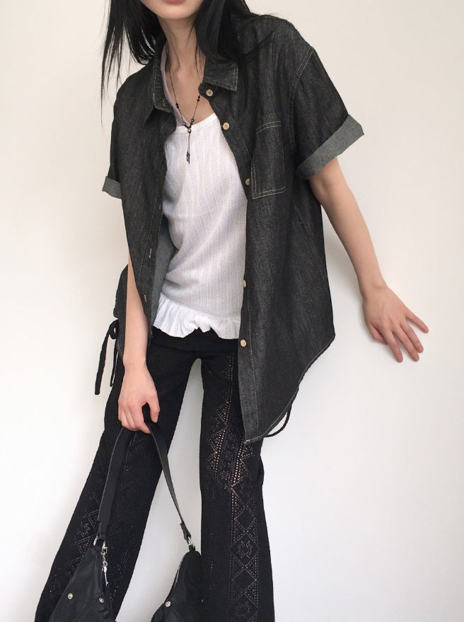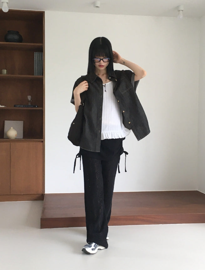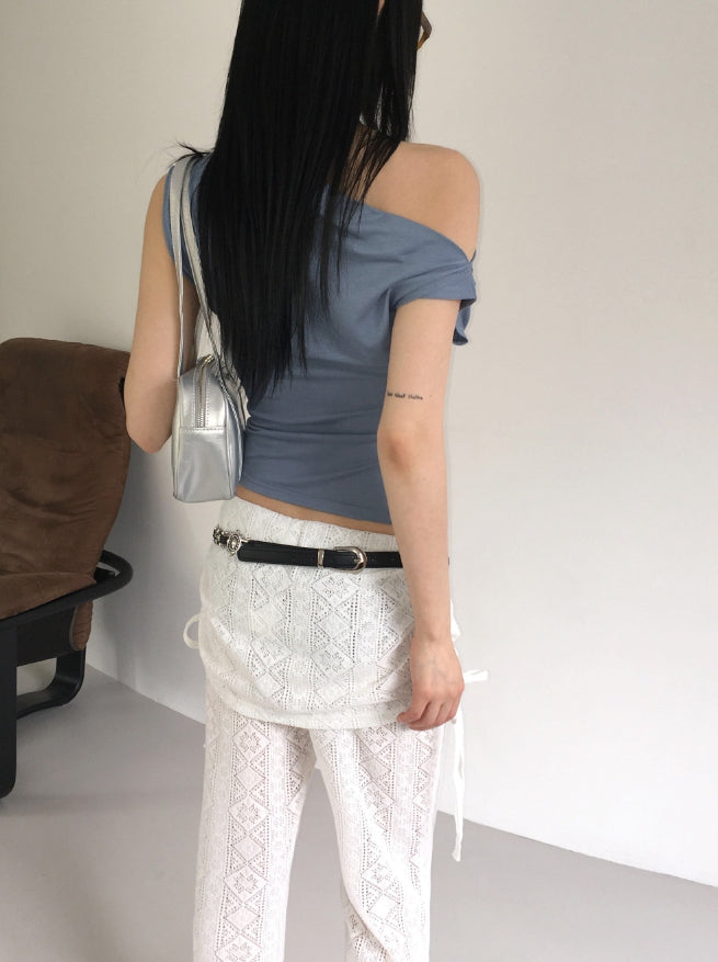 チボンパンチングシースルーシャーリングスカートブーツカットパンツ