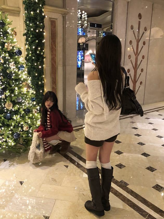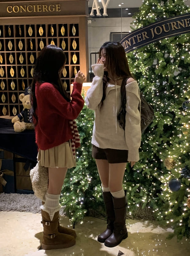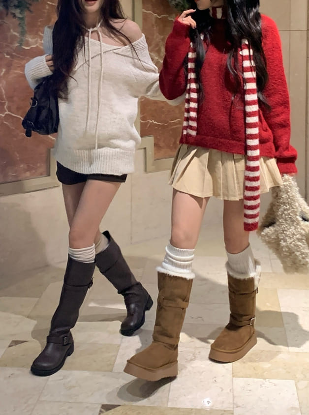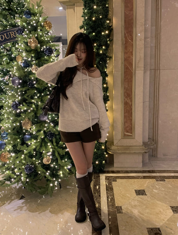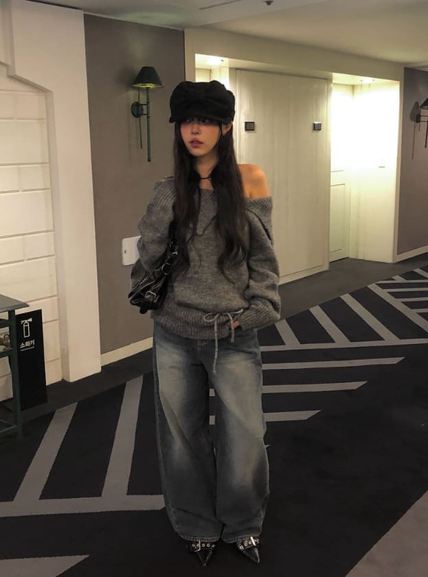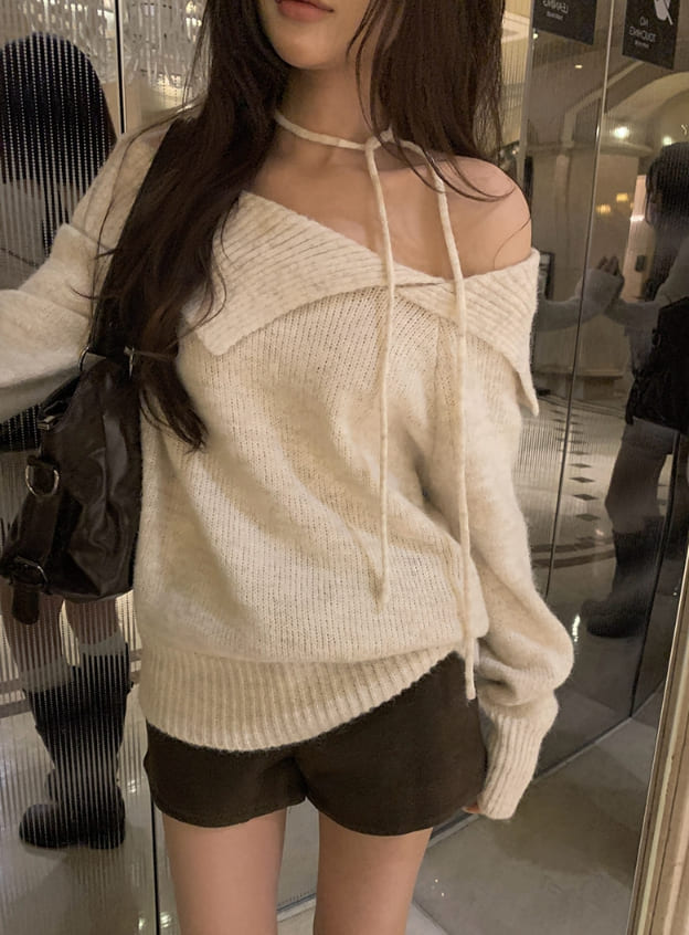 [Choker set] Nerlin One-Shoulder Loose Fit Choker Knit