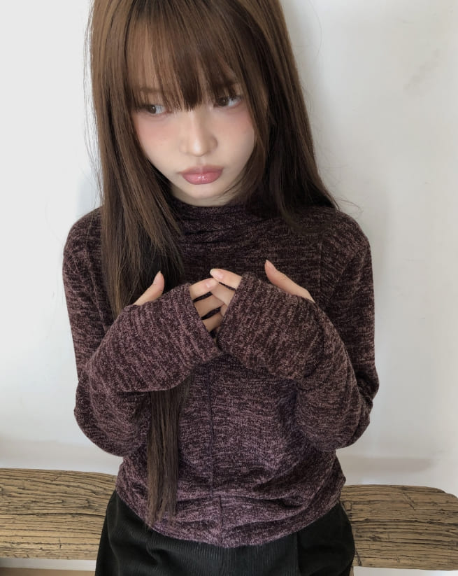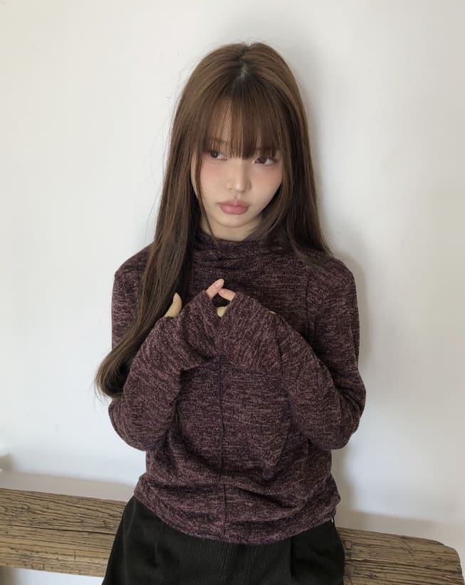 コーエルタートルネックハンドウォーマーフードTシャツ